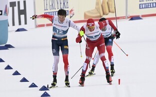 Finišisirgele keeras esimesena venelane Aleksandr Bolšunov, Kläbo kohe tema kõrval ja mõlemad tahtsid äärmist rada, mistõttu oli nende vahel väike kontakt ja Bolšunov murdis suusakepi, mistõttu möödus temast ka norralane Emil Iversen.
