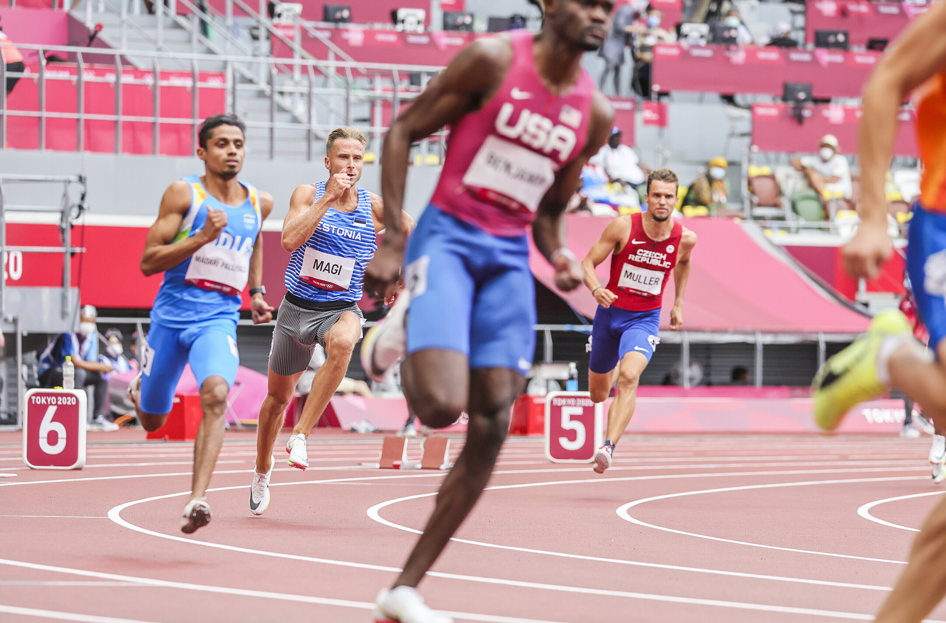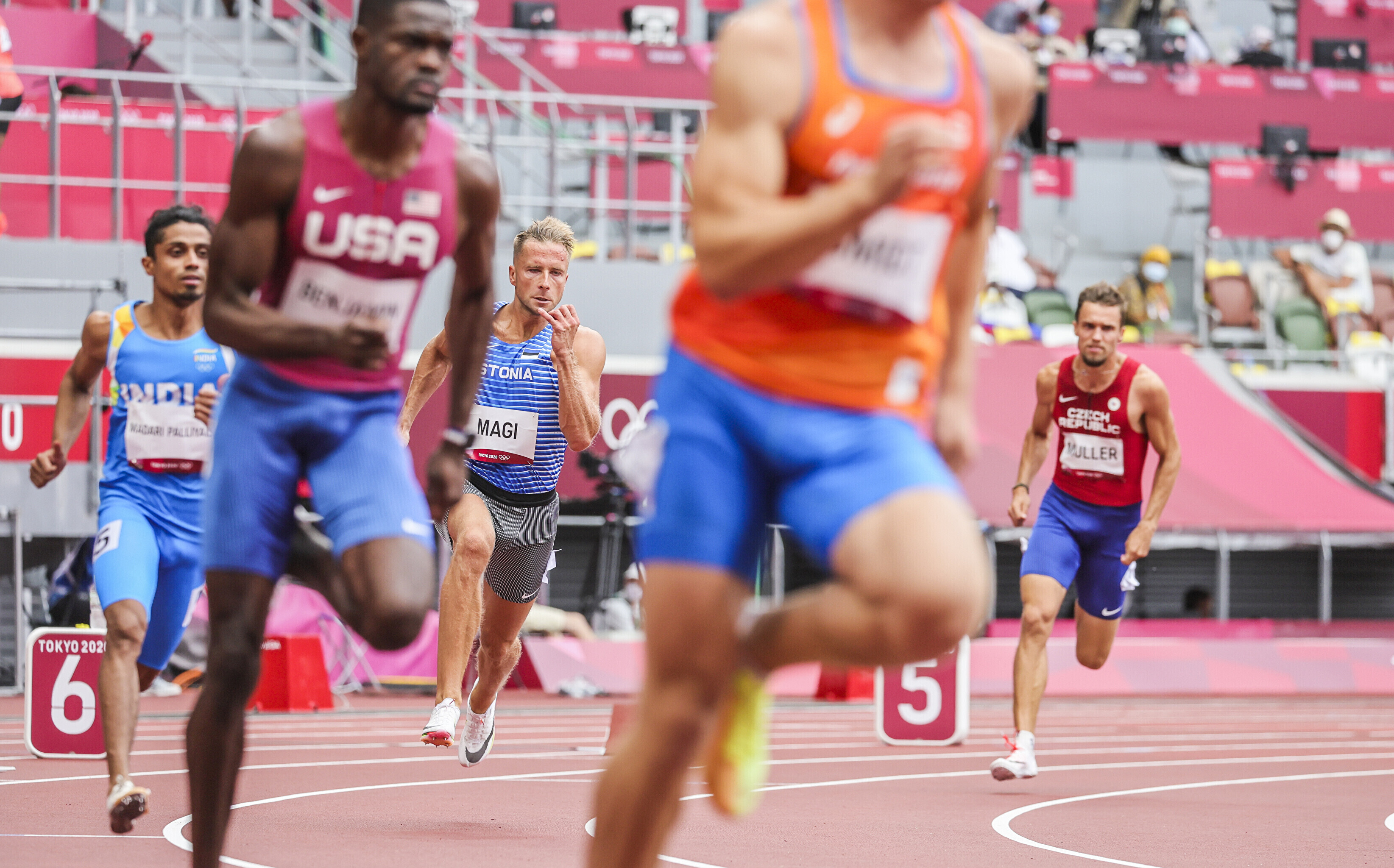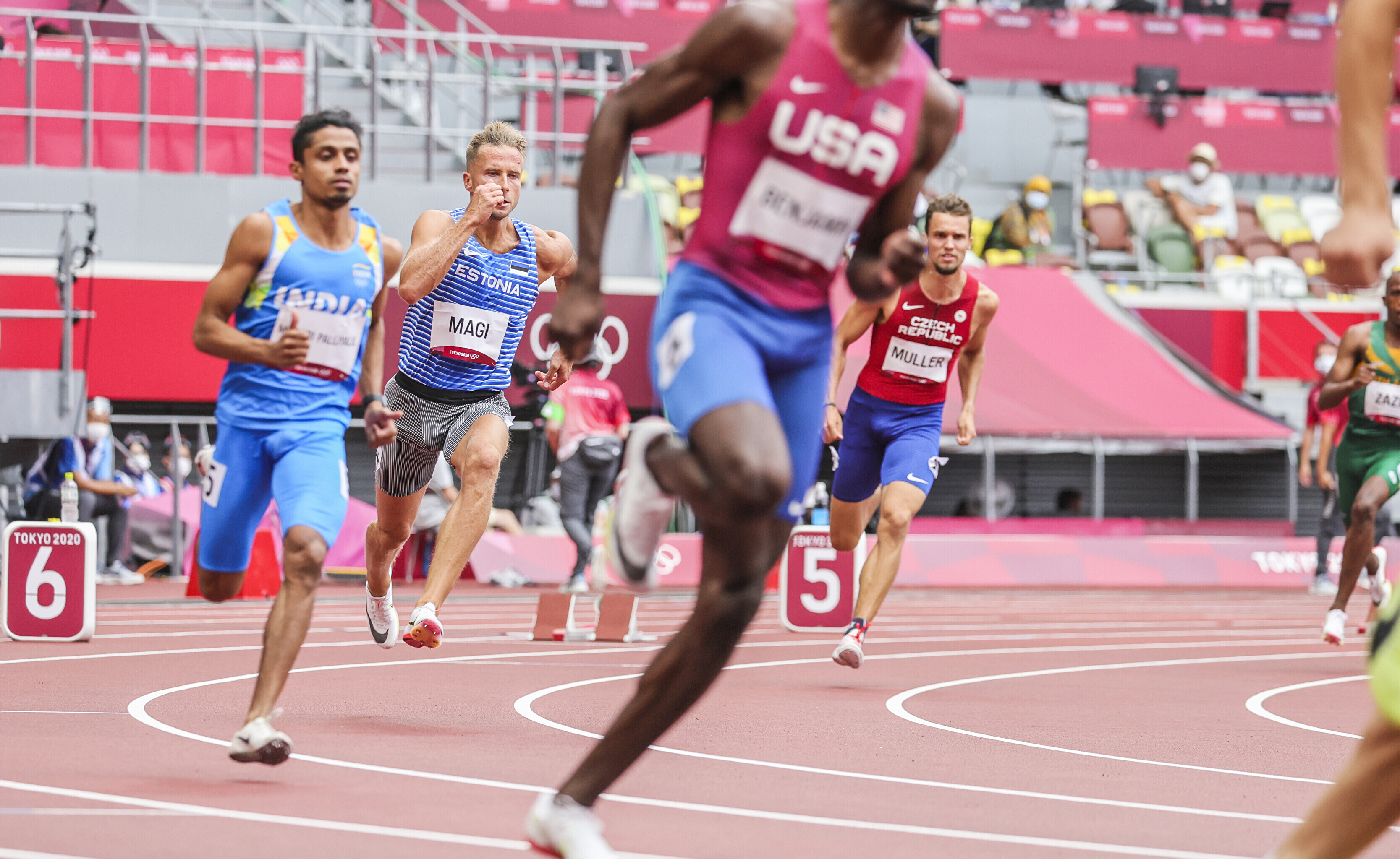 29-aastane eestlane tuli staadionile viimases ehk viiendas eeljooksus, mille favoriit oli ameeriklane Benjamin Rai, kelle hooaja tippmark, mis on ühtlasi ka isiklik rekord, on nii hea kui 46,83. Rasmus Mägit edestaski oma jooksus vaid Rai, joostes võiduajaks 48,60.