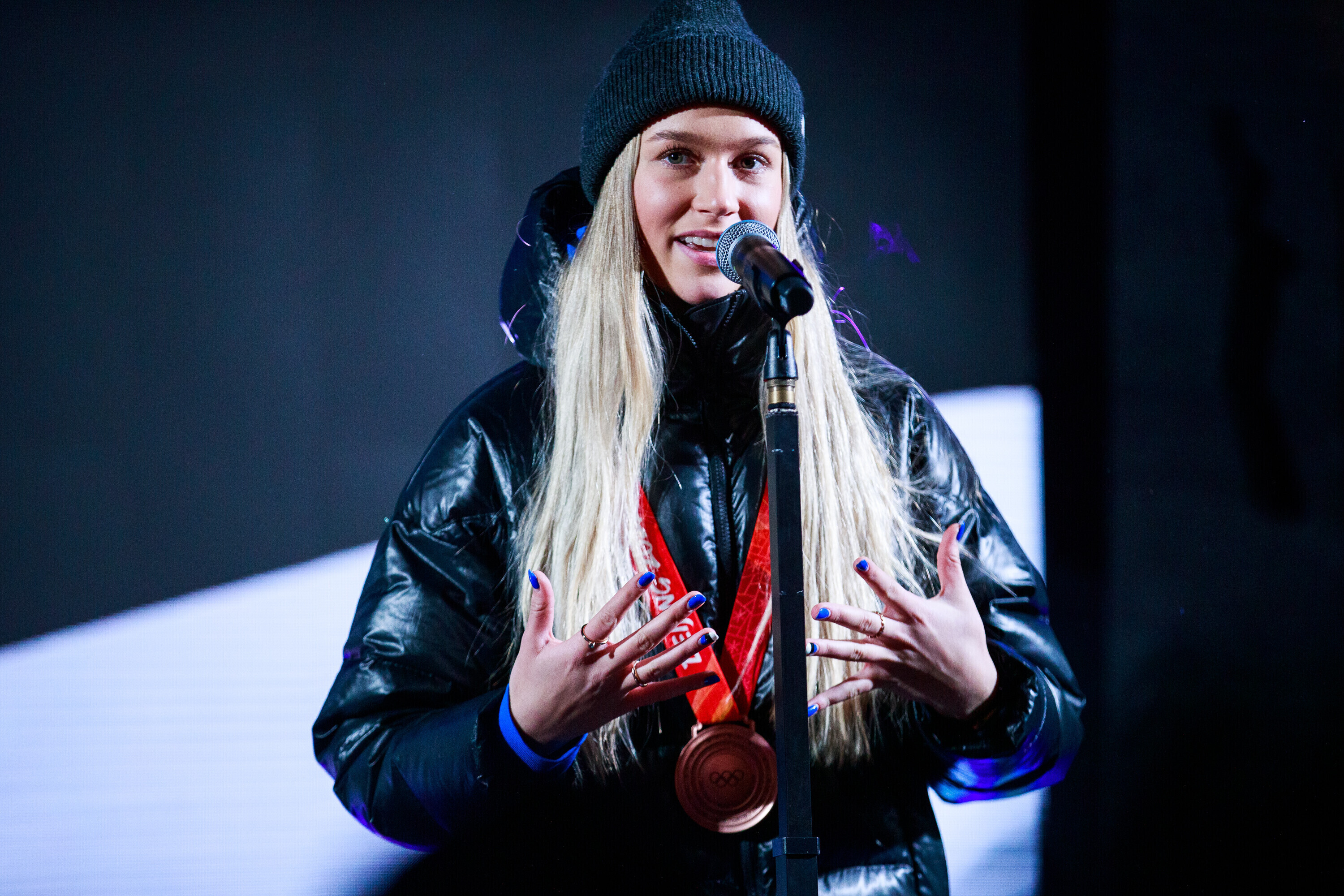 Olümpiamängudel freestyle-suusatamise pargisõidus pronksi võitnud Kelly Sildaru jõudis teisipäeva õhtul Tallinnasse. Rotermanni kvartalisse oli olümpiakangelast vastu tulnud võtma paarsada inimest.