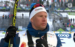 Pärast 15 km klassikasõitu jõudis vahetusalasse esimesena soomlane Iivo Niskanen, kes pidi vabatehnika avaringile minnes oma liidrikoha Krügerile loovutama. Kläbo ja Röthe suutsid vabatehnika esimeses pooles Krügeriga sammu pidada, aga teises pooles leidis hilisem võitja lisakäigu ja edestas koondisekaaslasi lõpuks pisut enam kui kümne sekundiga.