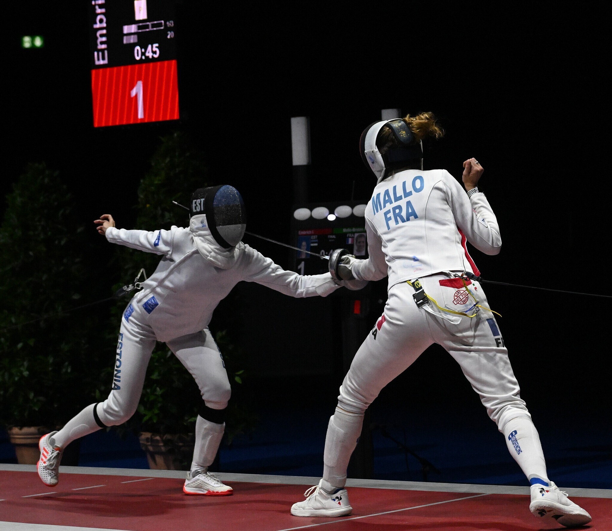 Embrich ja prantslanna Auriane Mallo-Breton alustasid finaalis tasavägiselt ning lõpetasid avakolmandiku 2:2 viigiseisul. Embrich avas siis teises kolmandikus 5:2 eduseisu ning juhtis enne otsustava perioodi algust 6:3, kuid prantslanna võitles end kaotusseisust välja ja jõudis 40 sekundit enne matši lõppu punkti kaugusele.