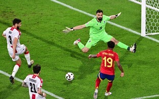 Jalgpalli Euroopa meistrivõistlustel jäi Hispaania kaheksandikfinaalis avapoolajal Gruusia vastu kaotusseisu, aga võitis kohtumise lõpuks kindlalt 4:1.