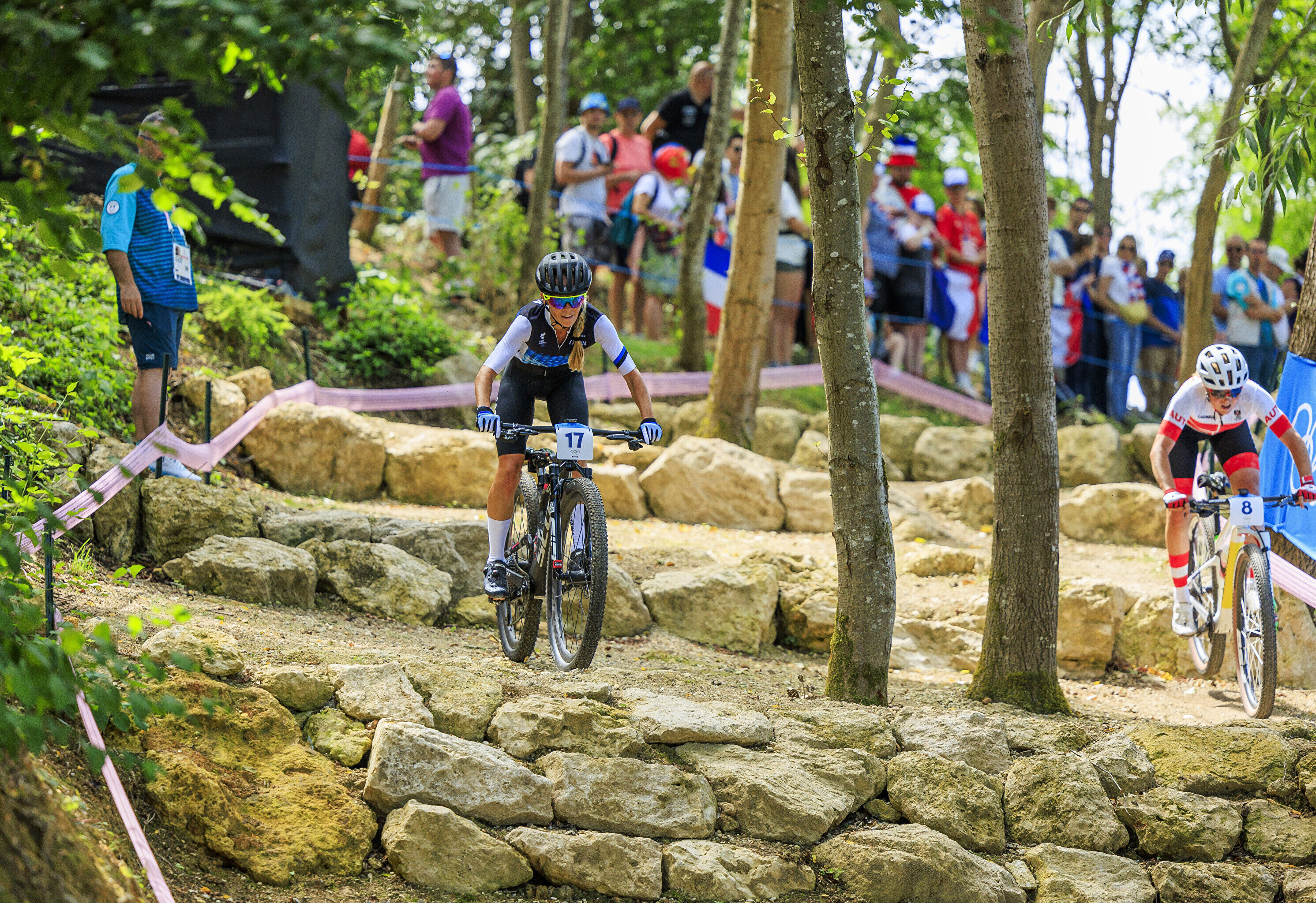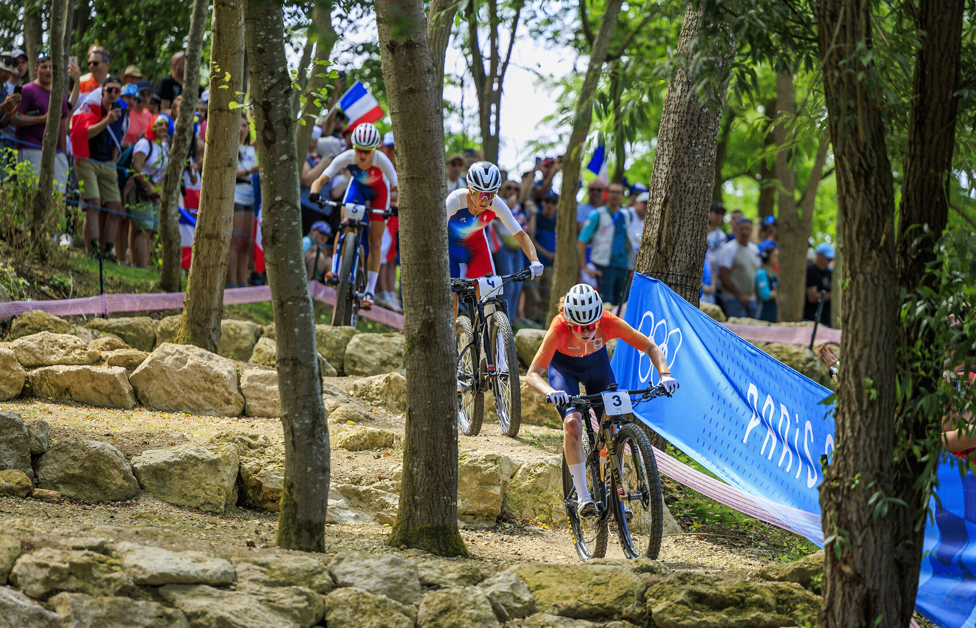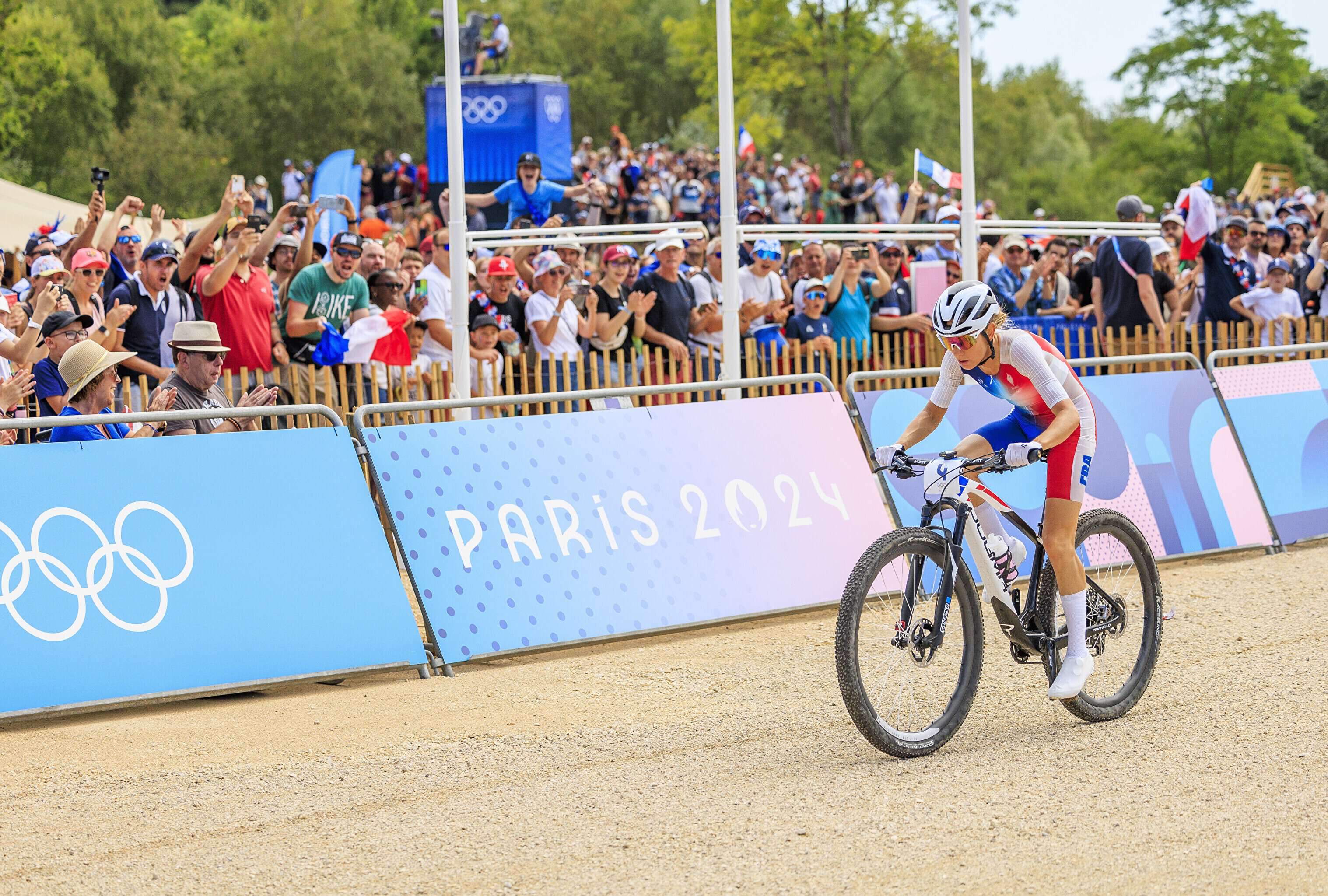 Kodupubliku rõõmuks krooniti Pariisi kesklinnast umbes 30 kilomeetri kaugusel asuval Elancourti mäel olümpiavõitjaks teise ringi alguses konkurentidelt eest sõitnud ja seejärel pidevalt vahet suurendanud Pauline Ferrand-Prevot, kes edestas hõbeda nimel käinud võitluses tugevamat jalga näidanud ameeriklannat Haley Battenit 2.57-ga ning rootslannat Jenny Rissvedsi 3.02-ga.