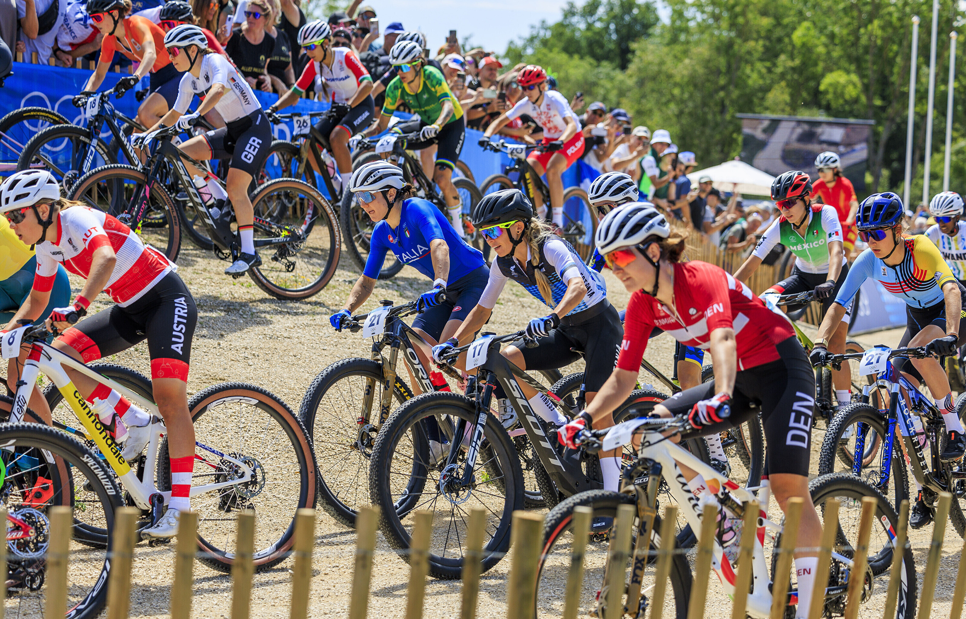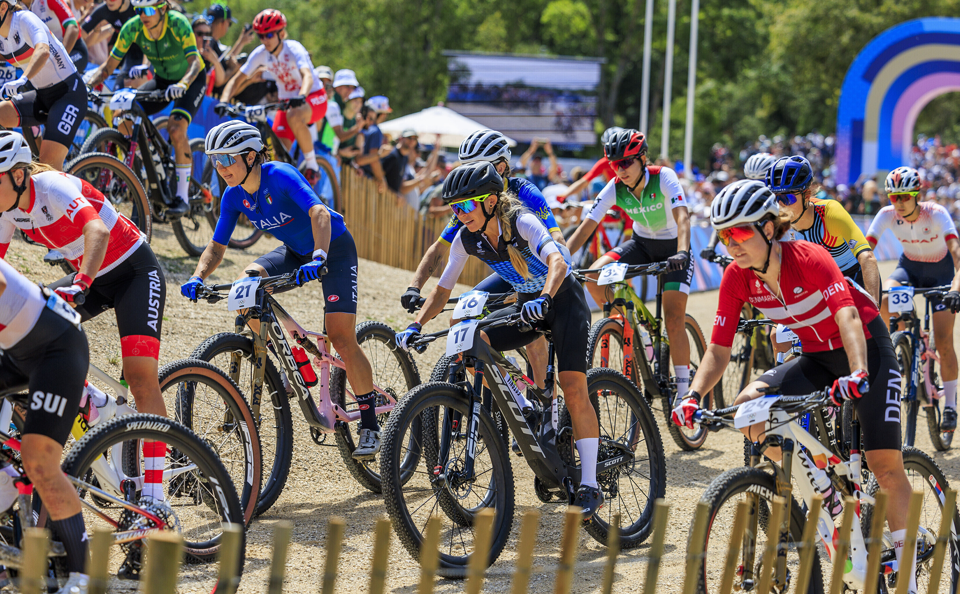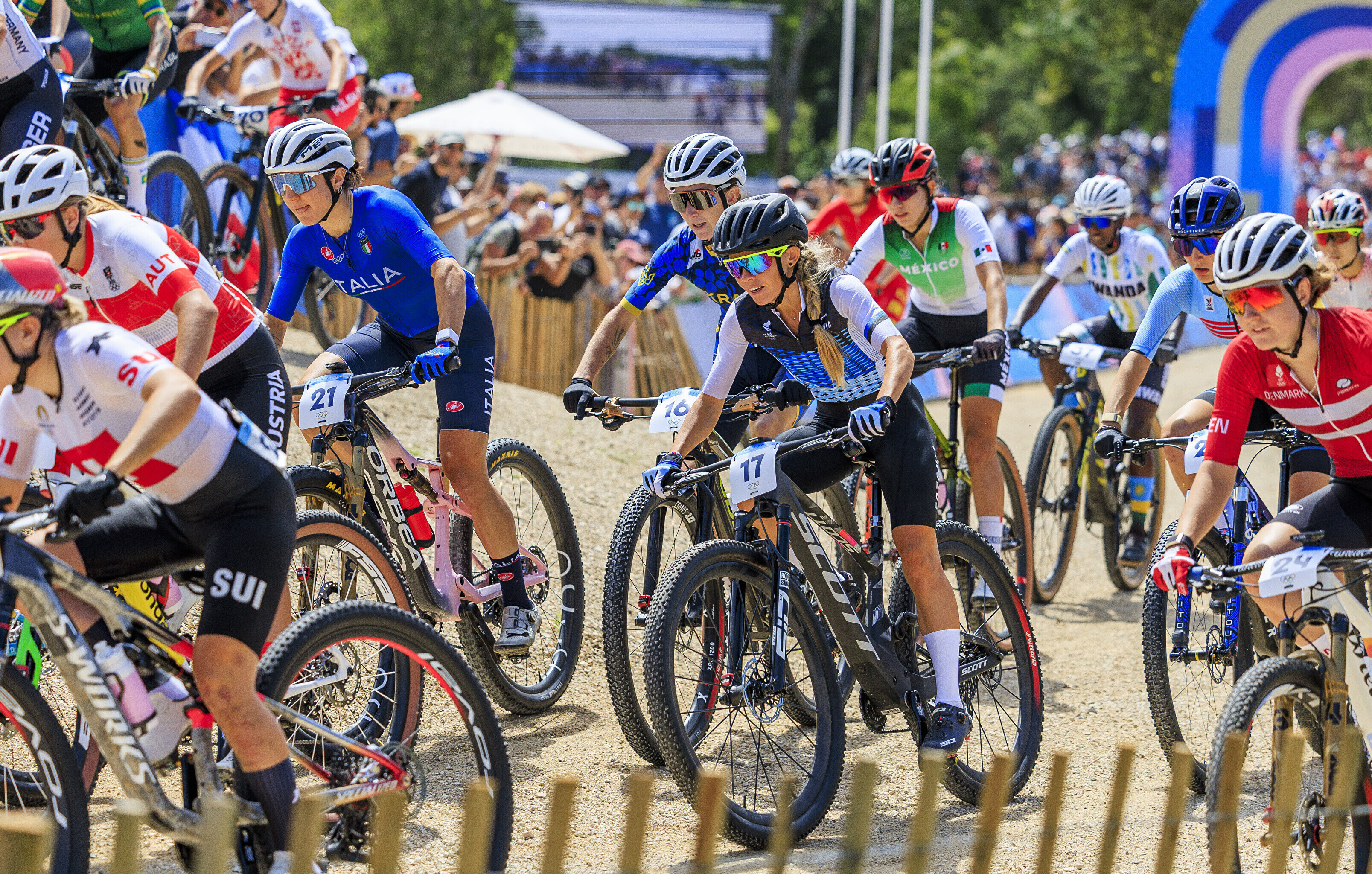 Kodupubliku rõõmuks krooniti Pariisi kesklinnast umbes 30 kilomeetri kaugusel asuval Elancourti mäel olümpiavõitjaks teise ringi alguses konkurentidelt eest sõitnud ja seejärel pidevalt vahet suurendanud Pauline Ferrand-Prevot, kes edestas hõbeda nimel käinud võitluses tugevamat jalga näidanud ameeriklannat Haley Battenit 2.57-ga ning rootslannat Jenny Rissvedsi 3.02-ga.