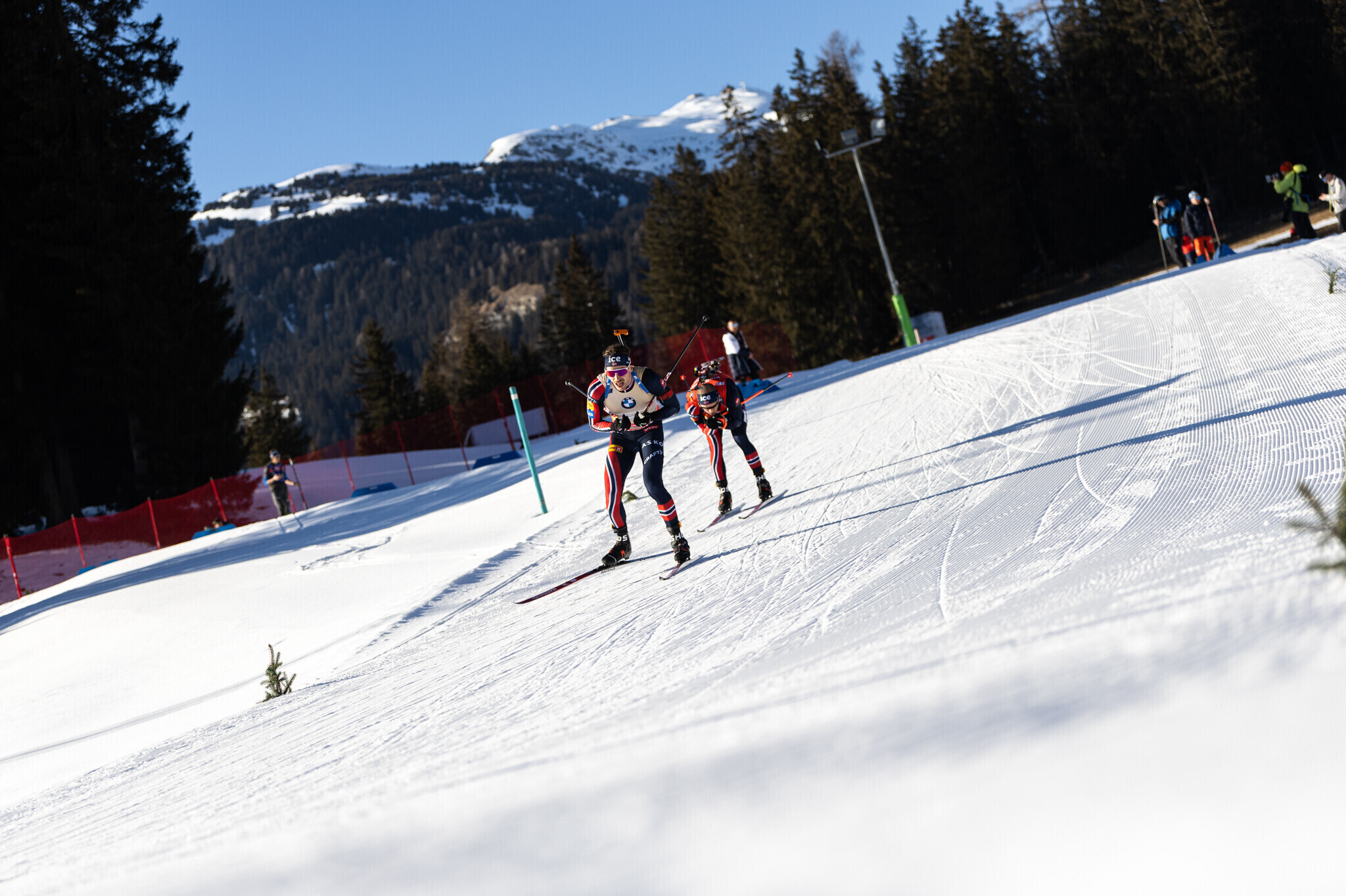 Valitsev maailmameister Sturla Holm Lägreid eksis teises tiirus ühel lasul ning pidi leppima üheksanda kohaga (+57,3), vanem Bö vend eksis samuti ühel lasul ning teenis kümnenda koha (+1.02,0).