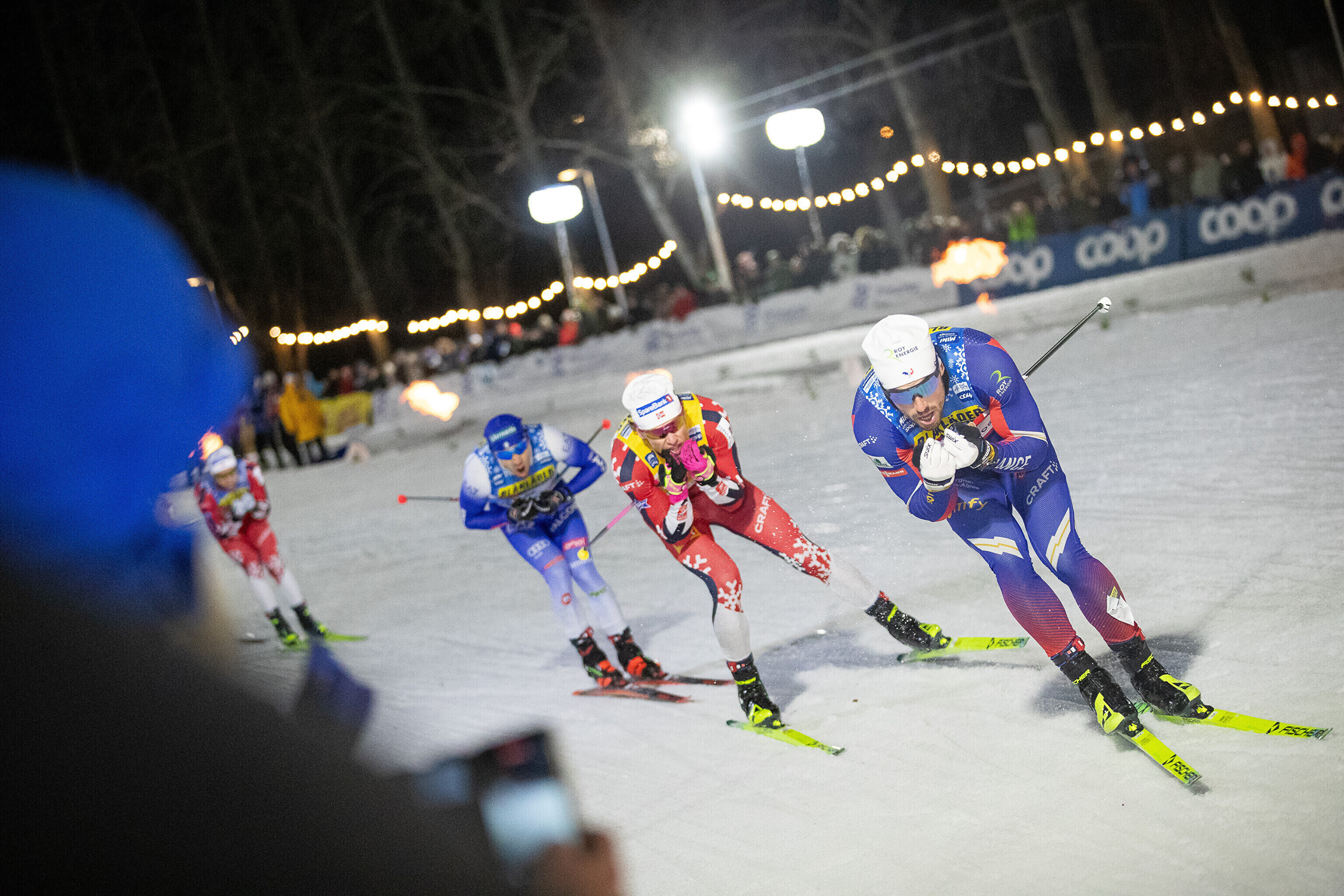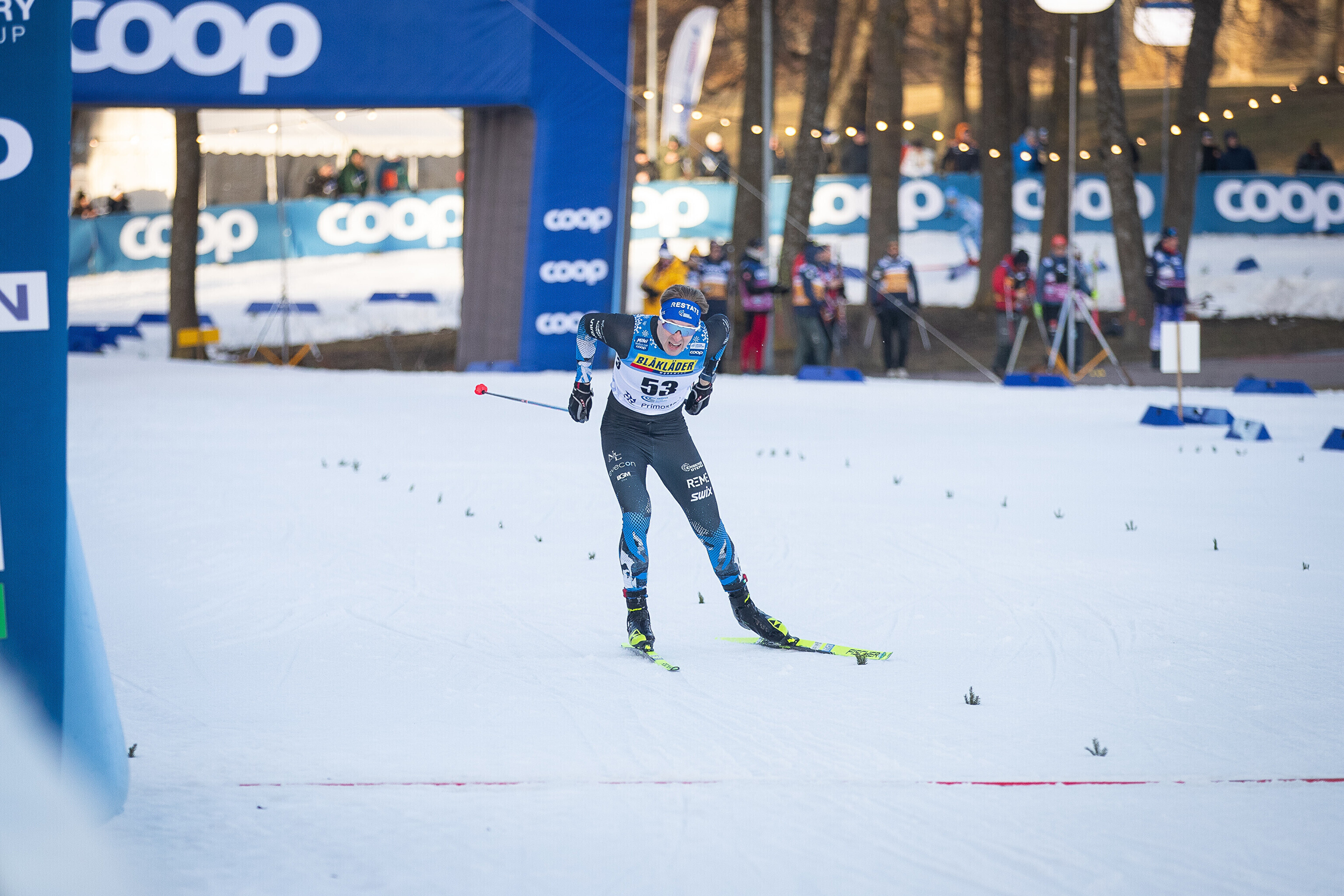Õhtu lõpetanud meeste finaalis jäi Kläbo küll üsna kehvale positsioonile, aga suutis end sealt siiski välja võidelda ja lõpusirgel talle enam vastaseid ei olnud. Norra suusatäht edestas fotofiniši järel teist kohta jagama jäänud prantslast Jules Chappaz'd ja koondisekaaslast Harald Östberg Amundseni 0,18 sekundiga.