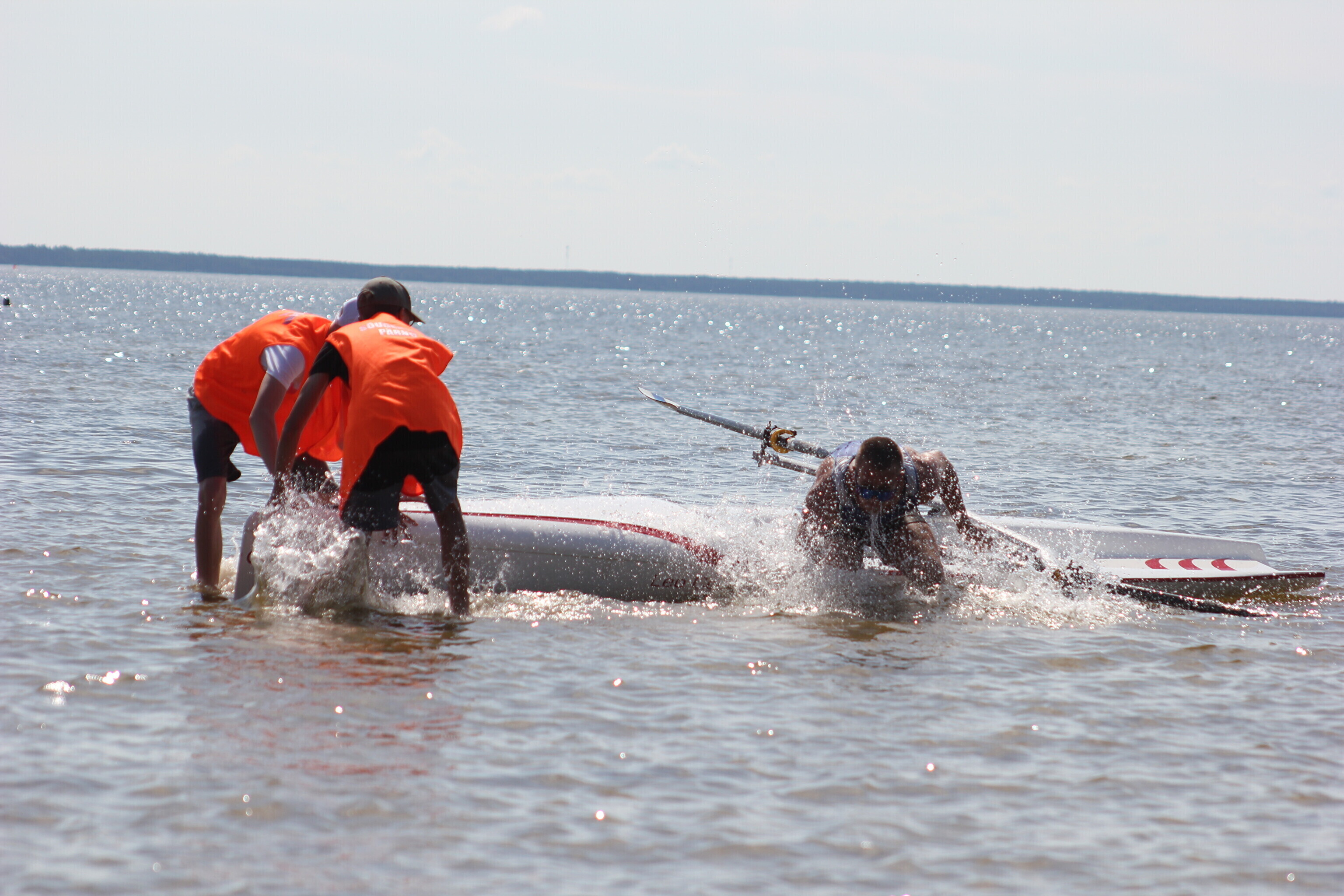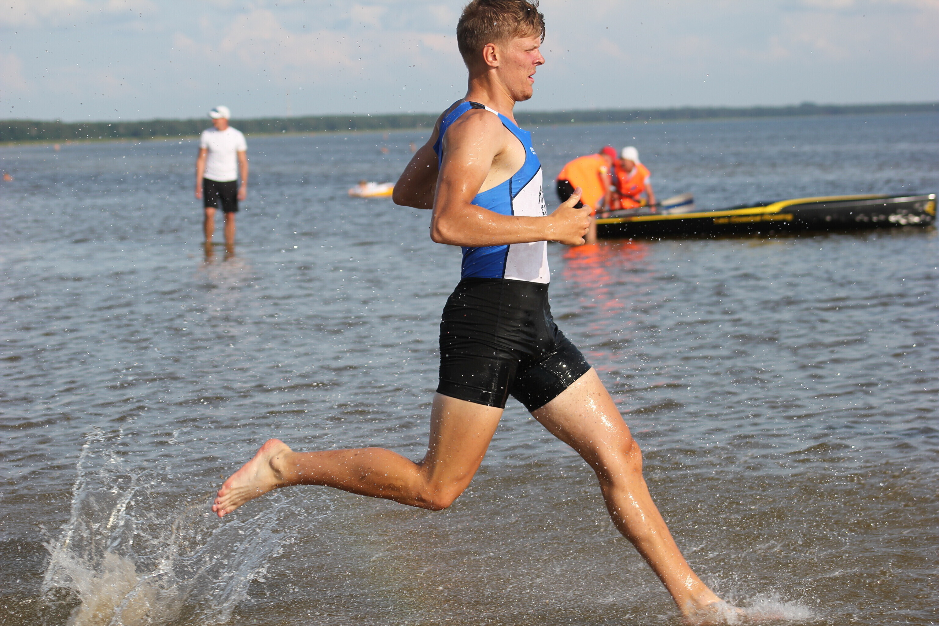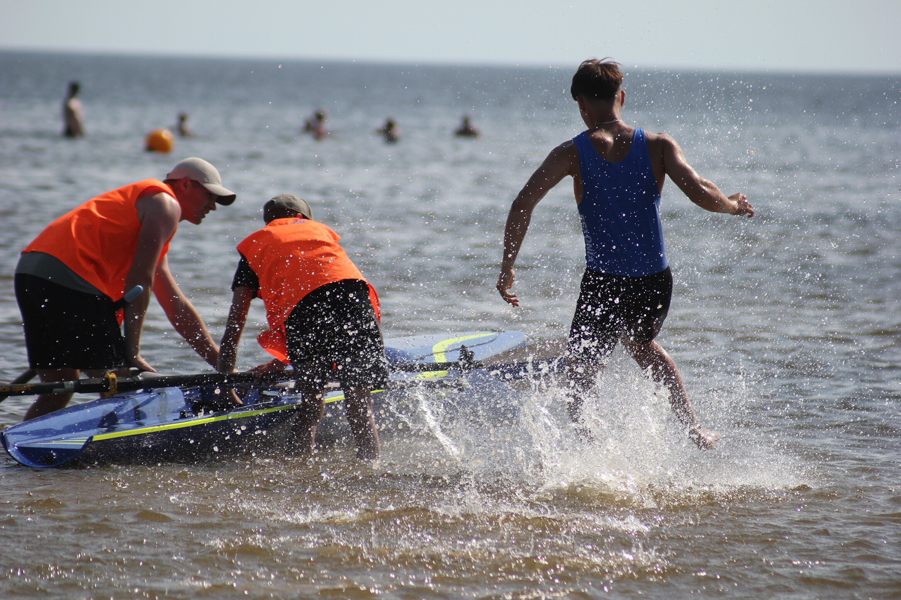 – võistlejad jooksevad veepiirini (u 10-50 m), kus neid ootab sõudmiseks valmis pandud paat;