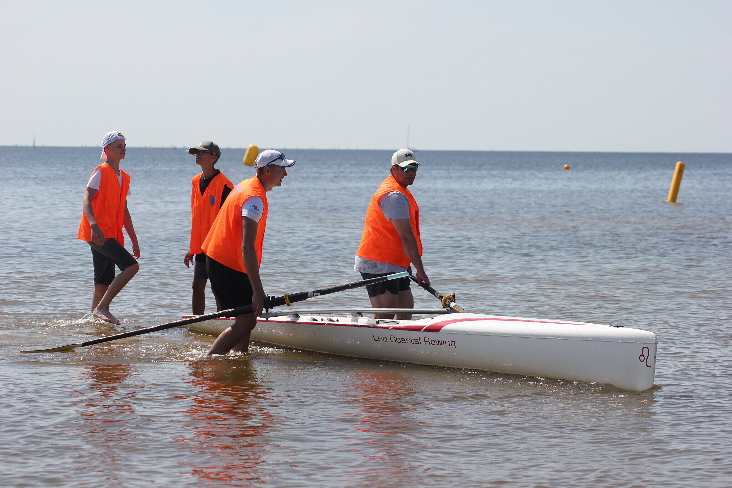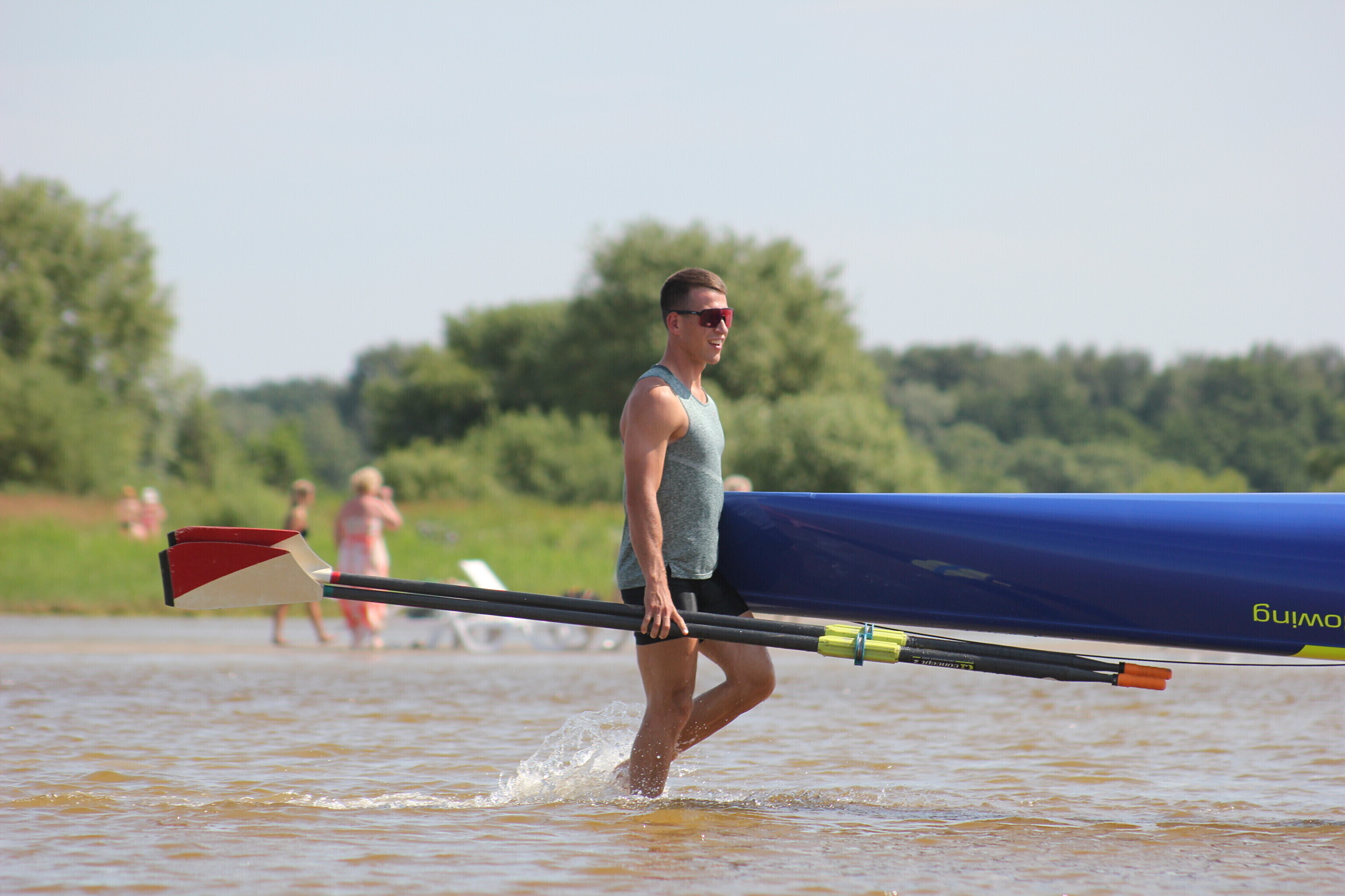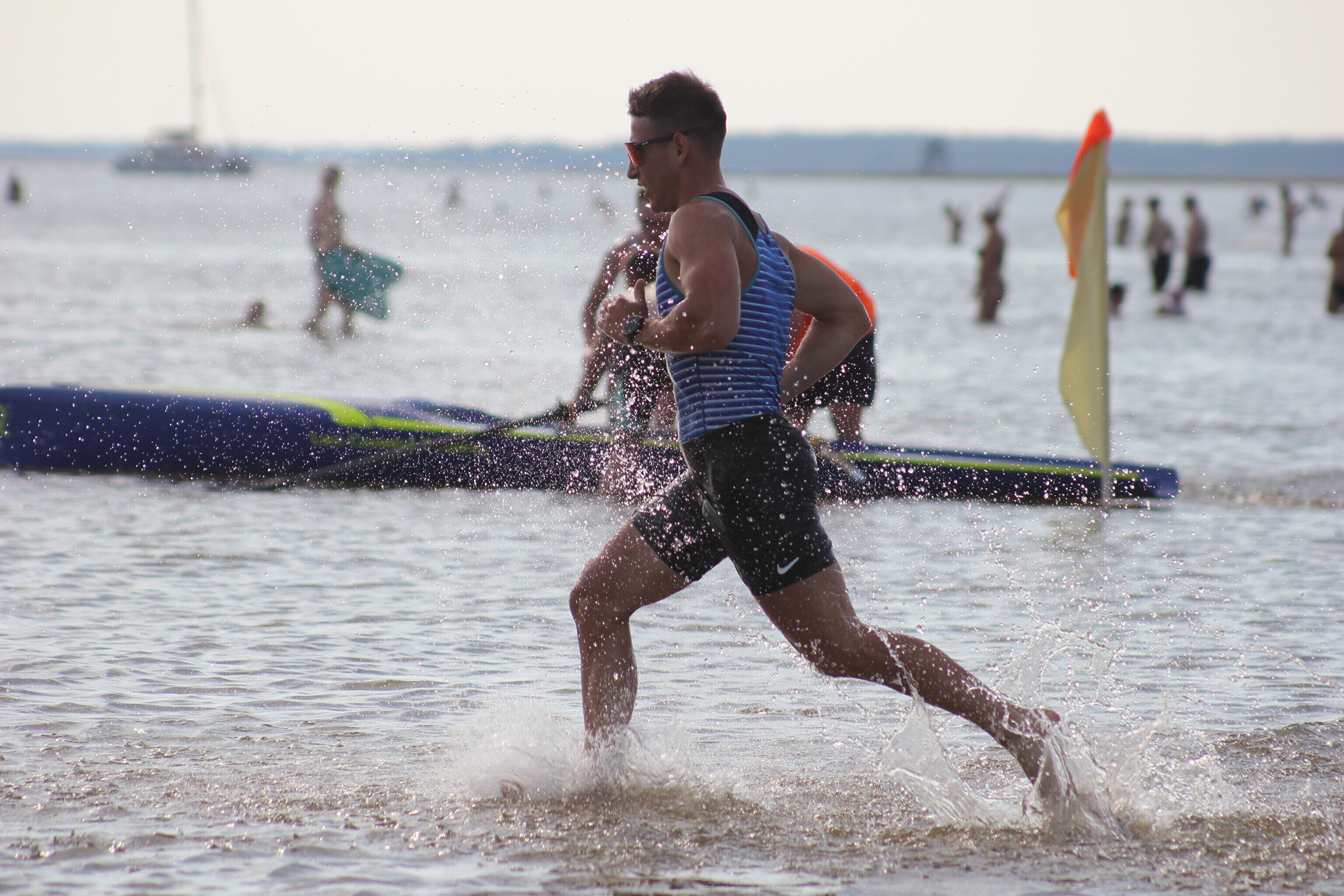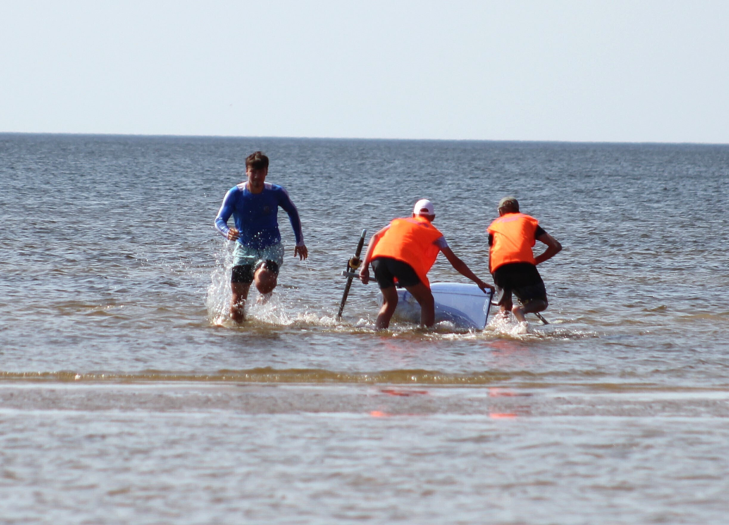 – võistlejad jooksevad veepiirini (u 10-50 m), kus neid ootab sõudmiseks valmis pandud paat;