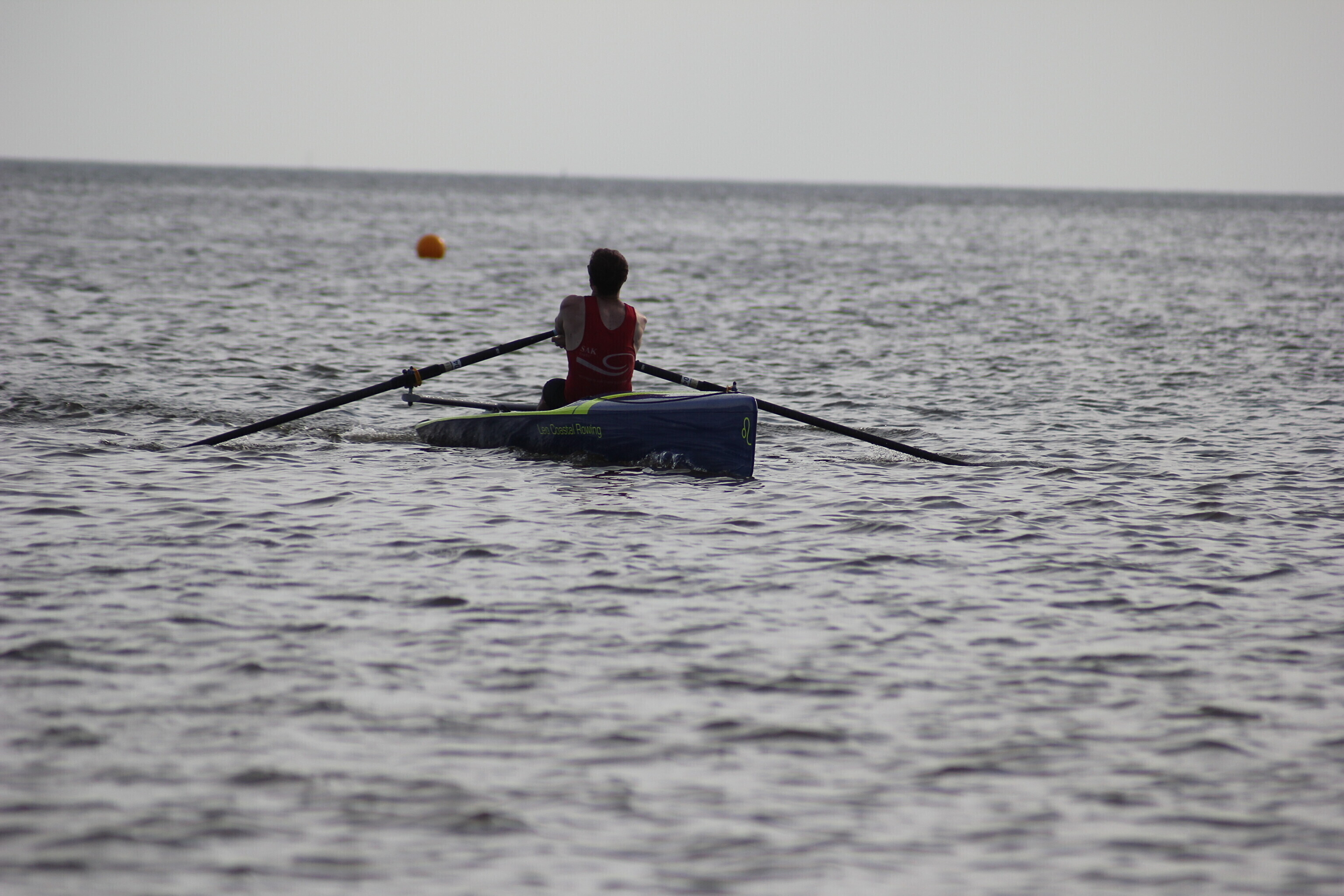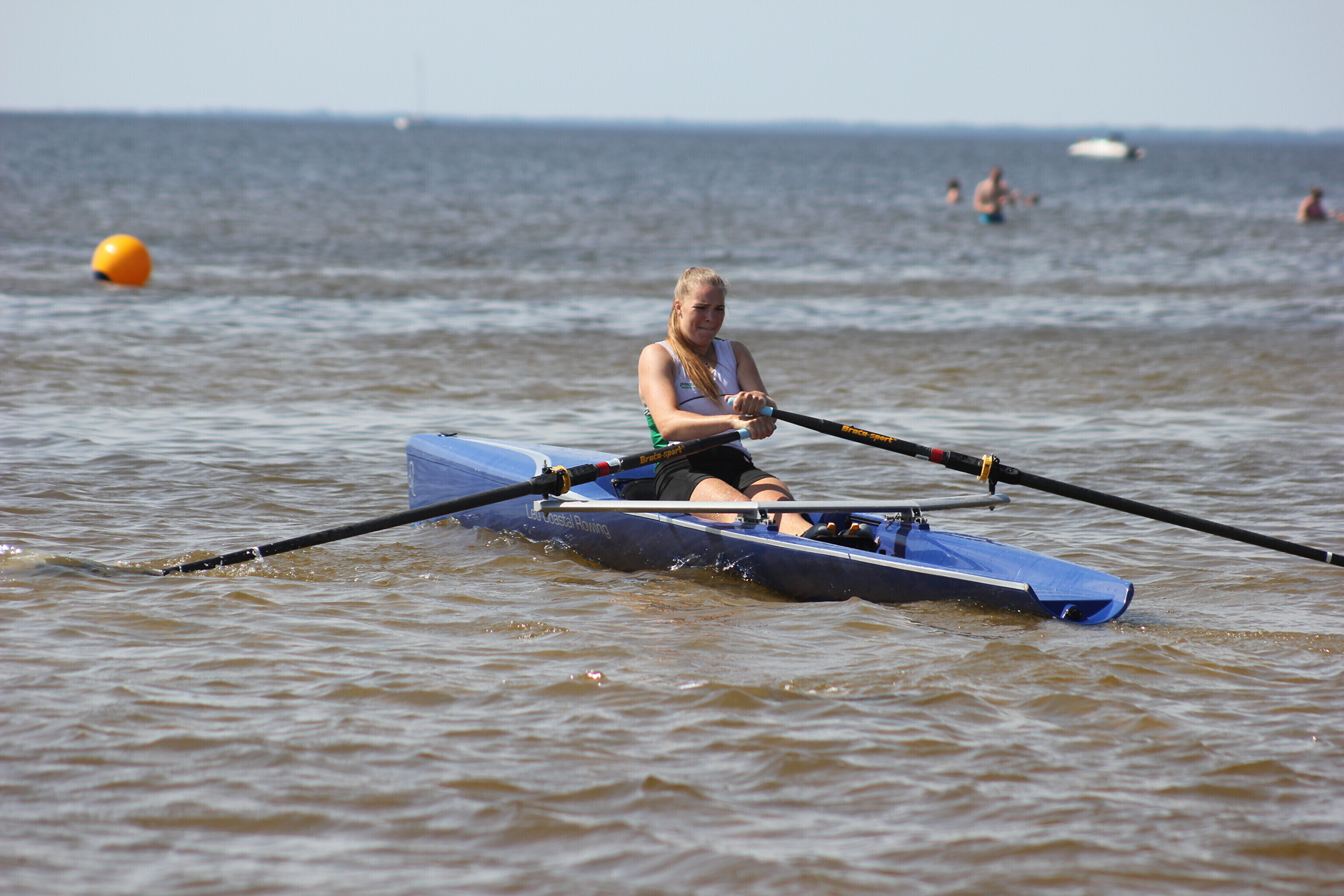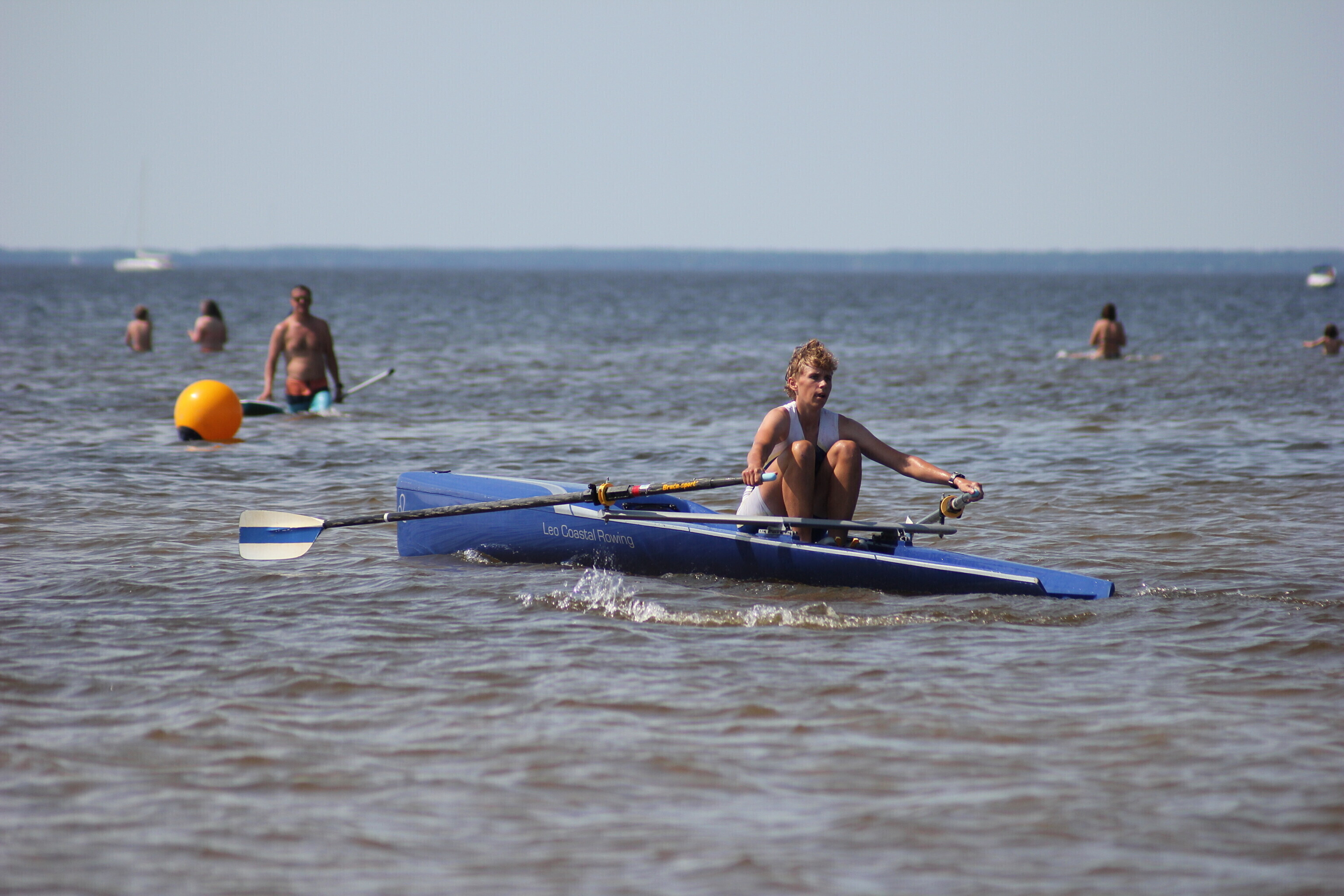 – paati hüpanuna sõutakse u 250 m slaalomi stiilis kaldast eemale, tehakse tagasipööre;