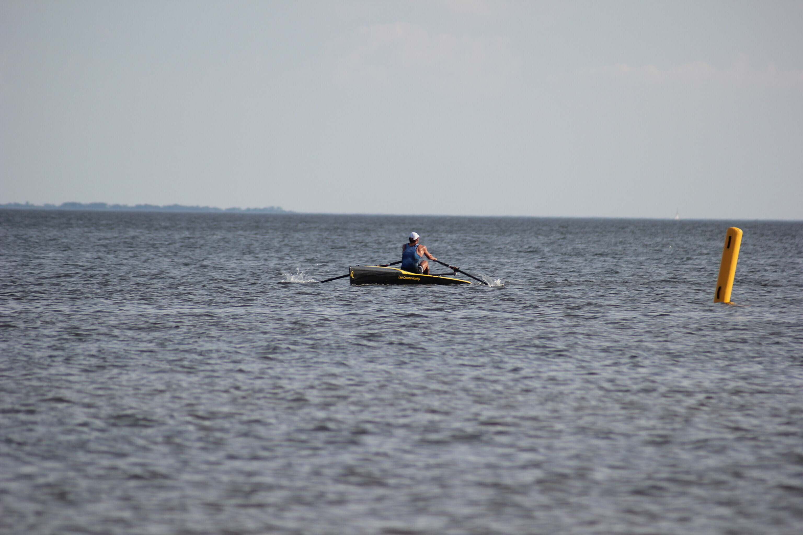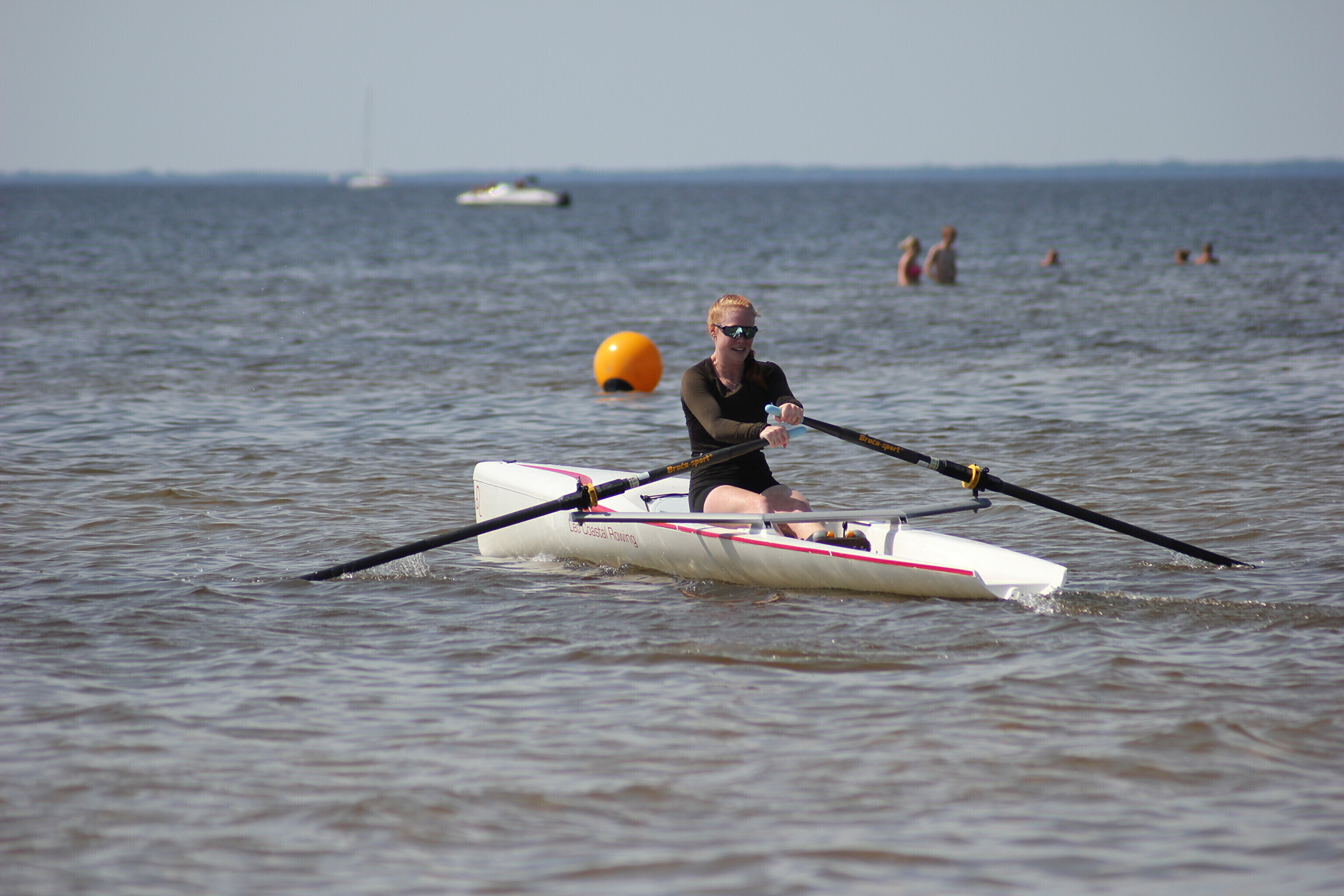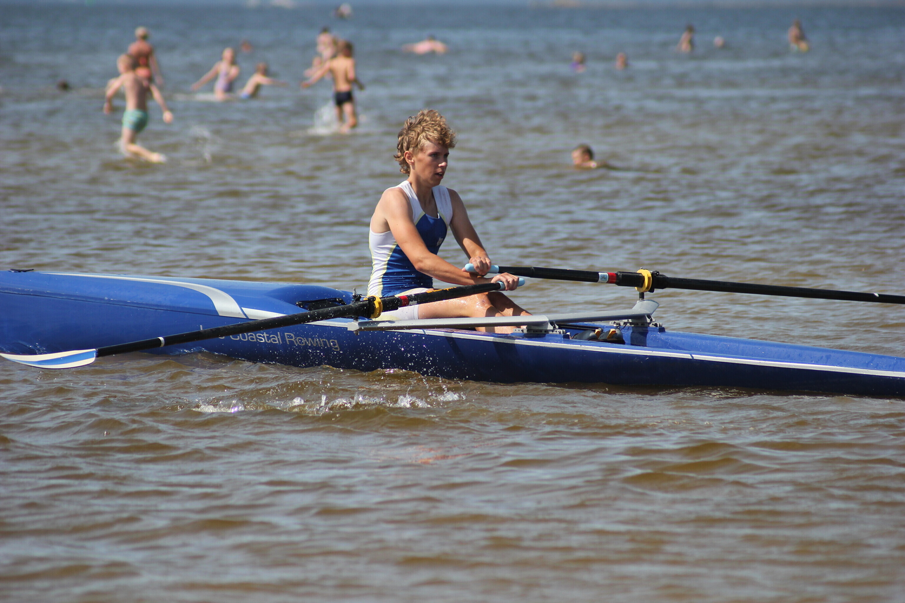 – paati hüpanuna sõutakse u 250 m slaalomi stiilis kaldast eemale, tehakse tagasipööre;