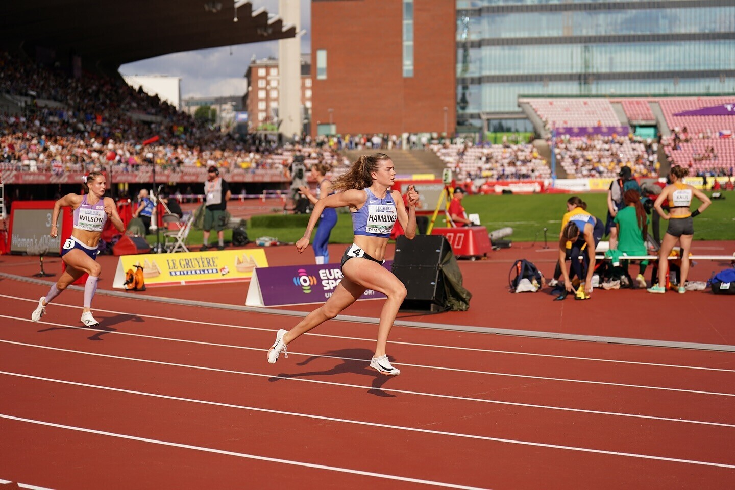 Hambidge oli viimasel tõkkel veel neljandal kohal, kuid püüdis vinge lõpuspurdiga kodupubliku ees jooksnud Mila Heikkoneni kinni ning teenis ajaga 56,71 U-20 vanuseklassi EM-il pronksmedali. Tegemist on Eesti esimese medaliga tänavustelt Euroopa meistrivõistlustelt.