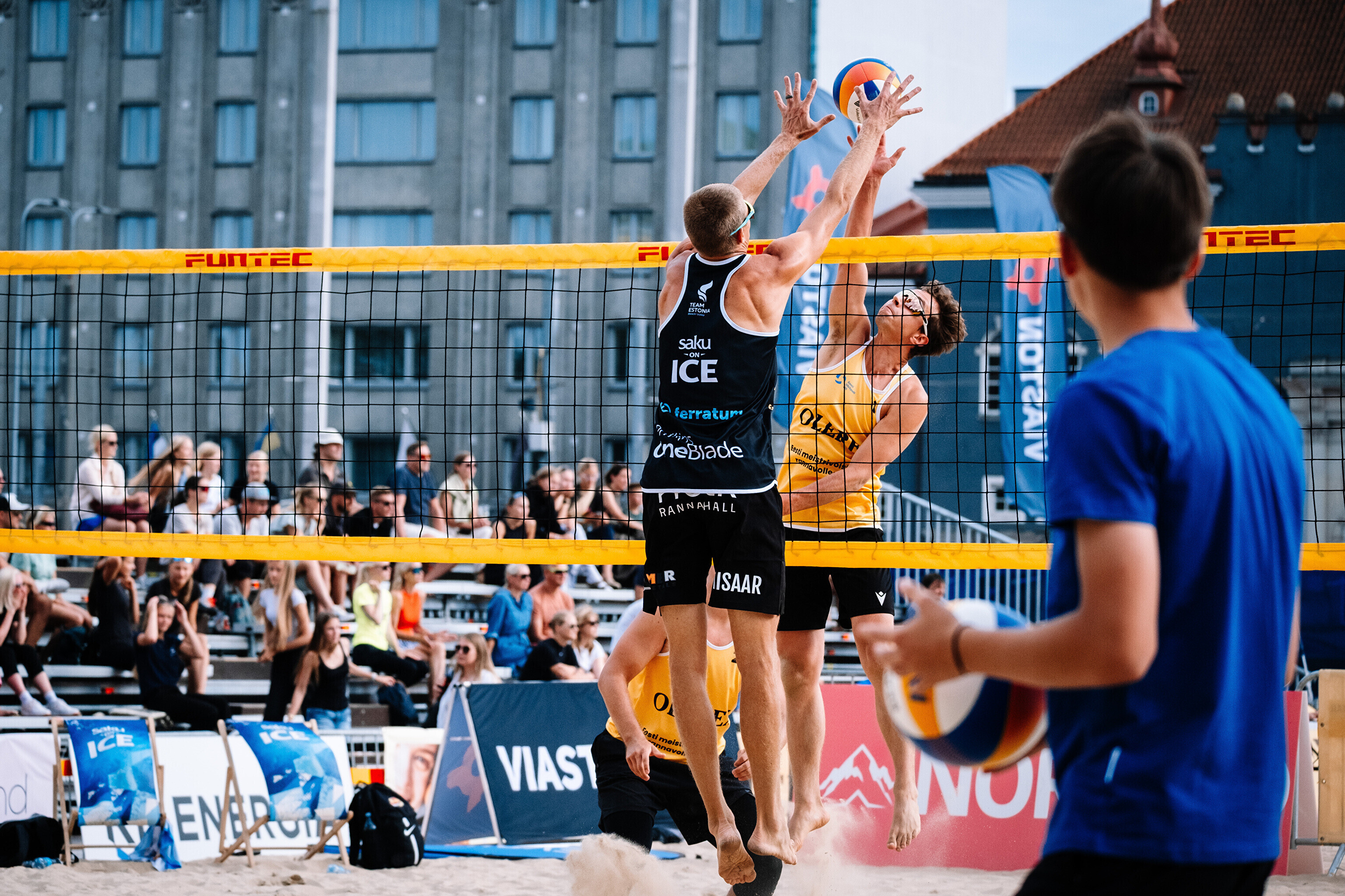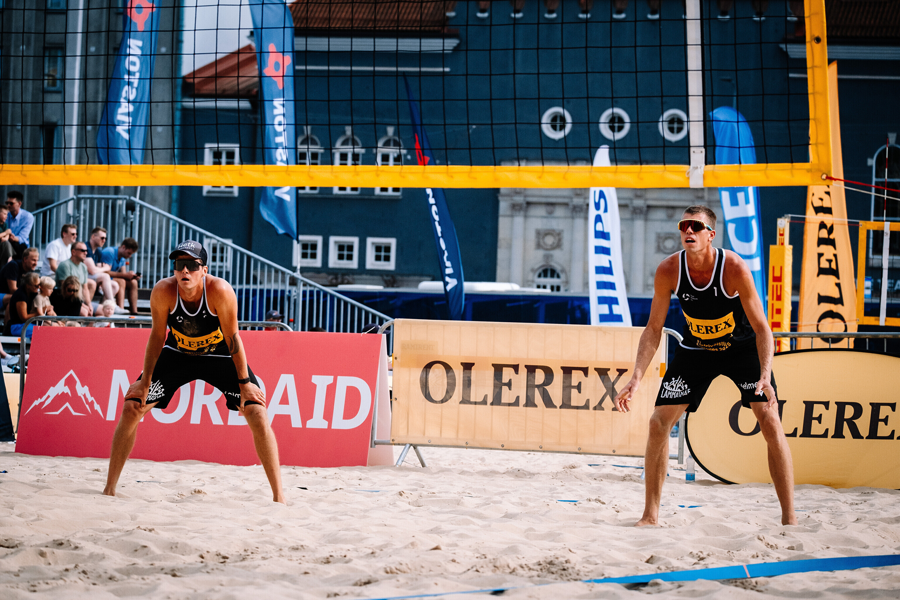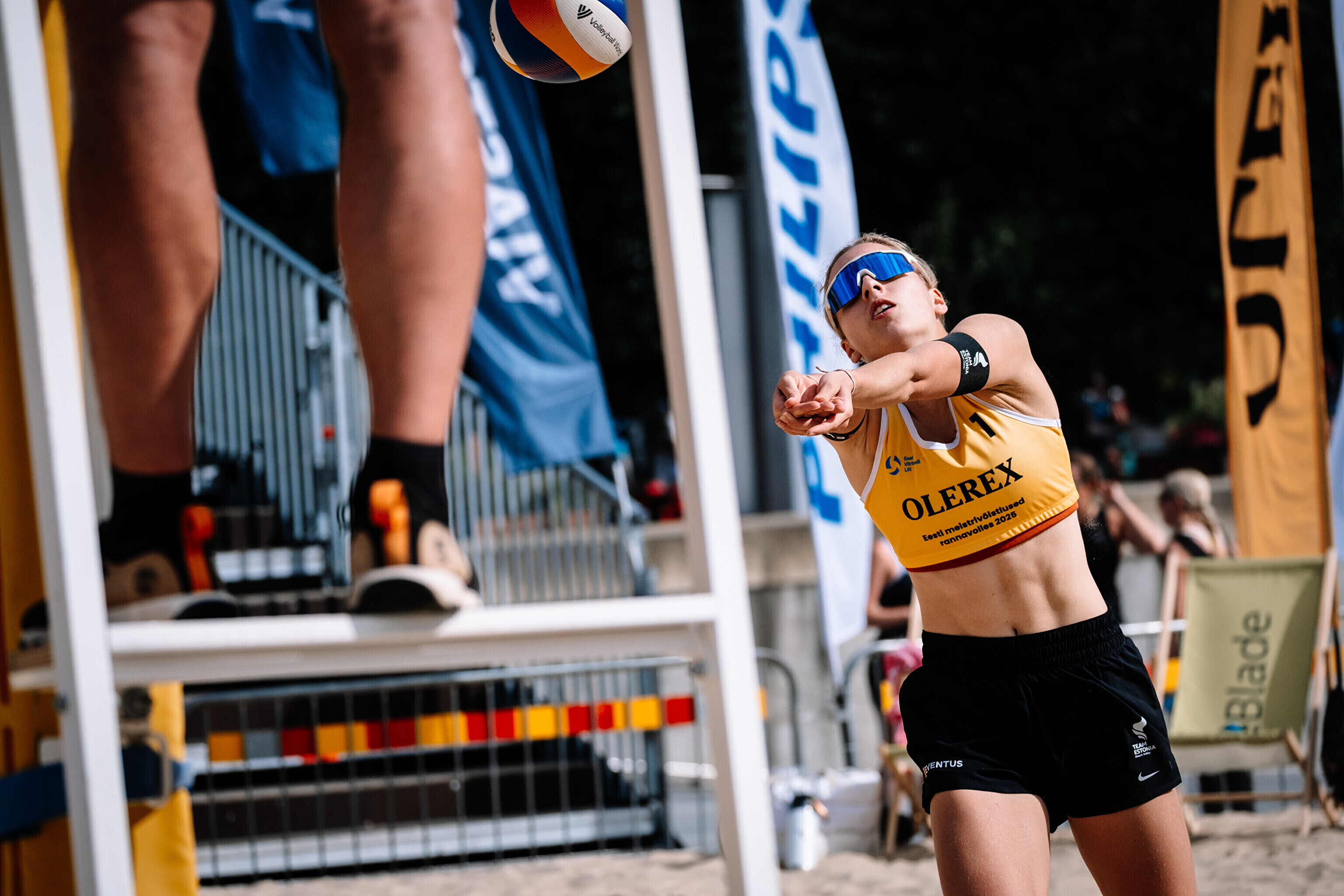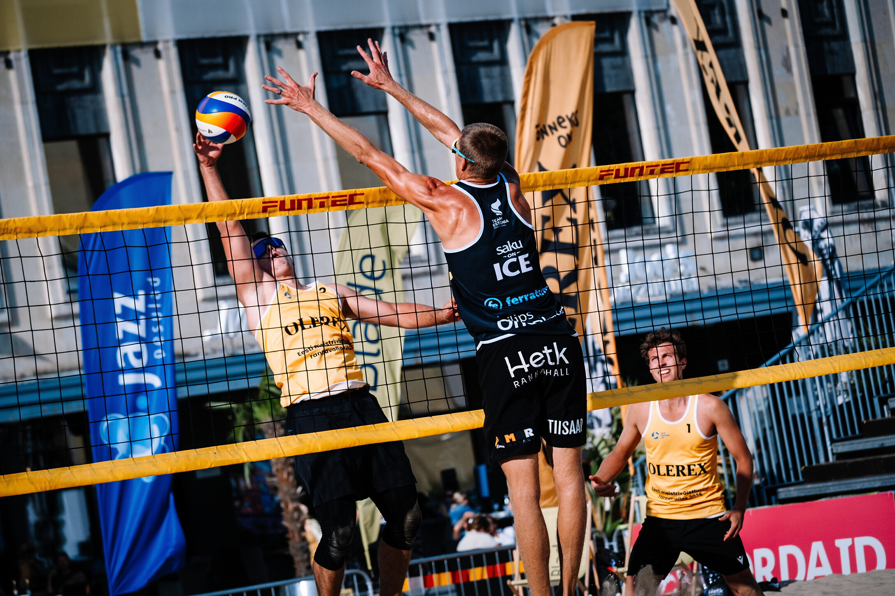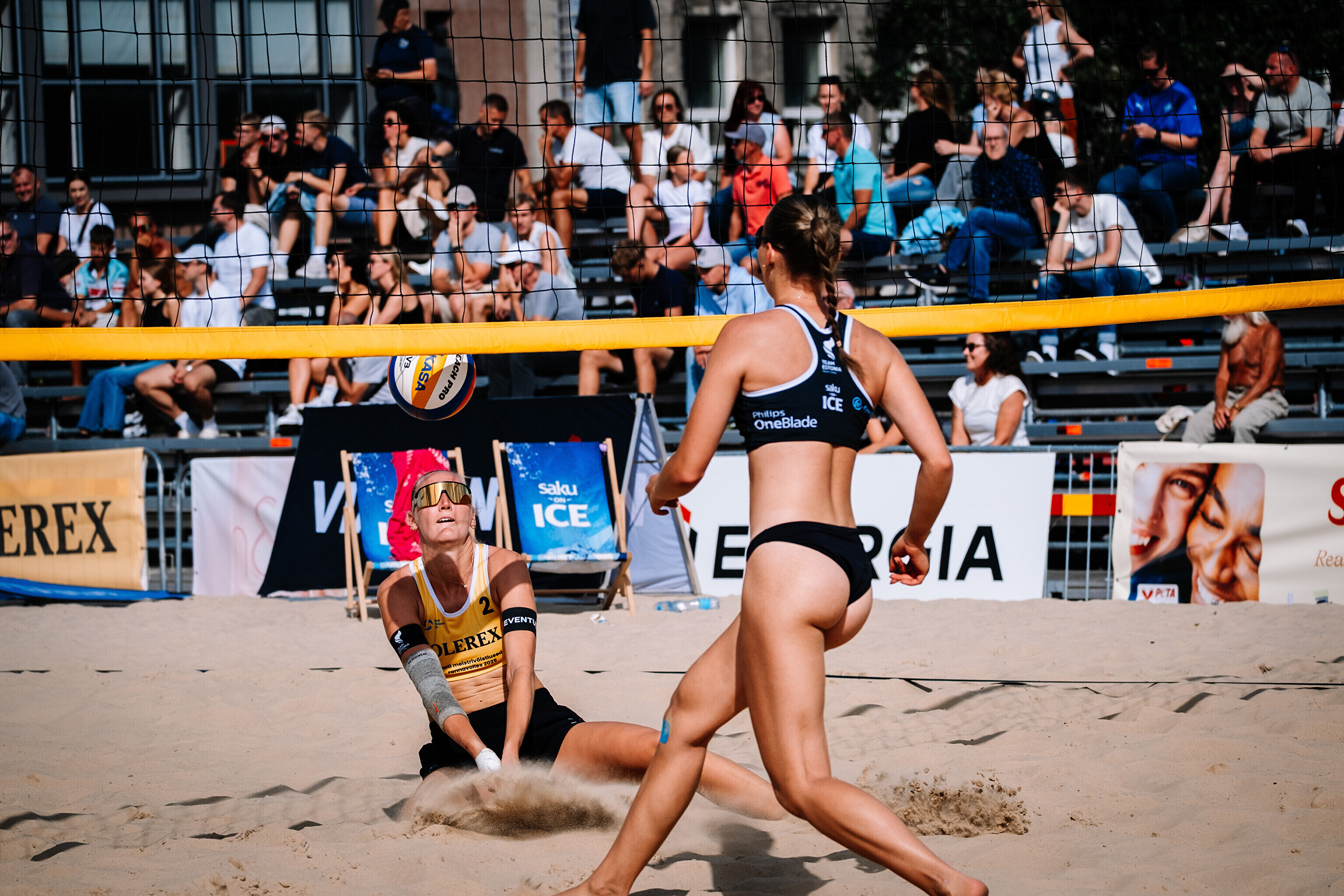 Neljapäevast pühapäevani toimuvad Tallinna südames Vabaduse väljakul Olerex Eesti meistrivõistlused rannavõrkpallis, kus on kahe põhiturniiri päeva järel selgunud veerandfinalistid.