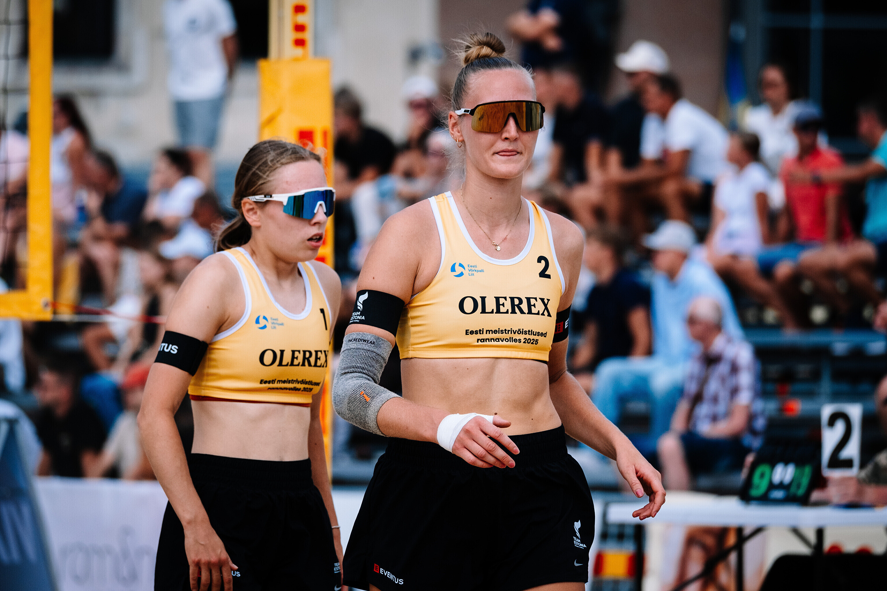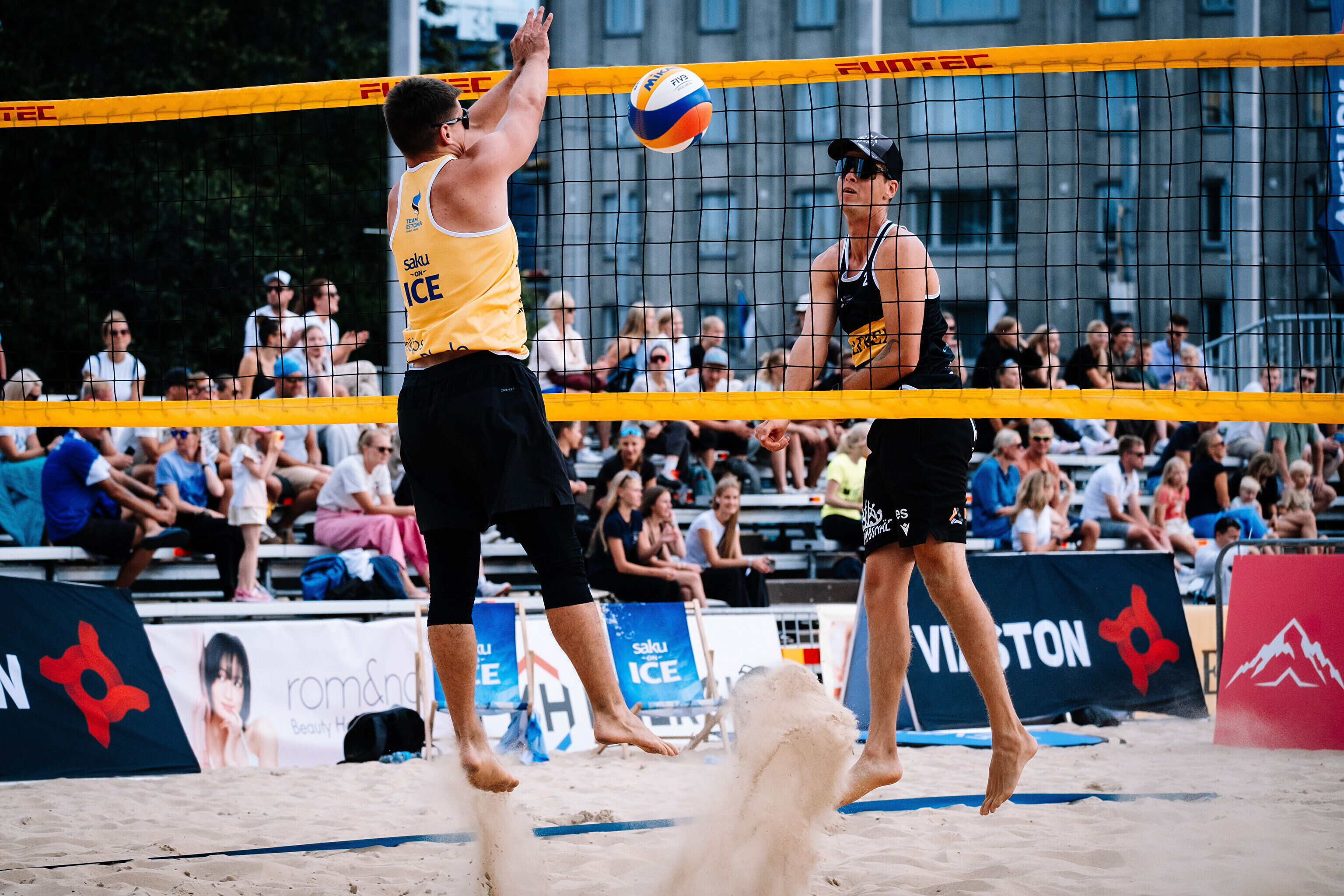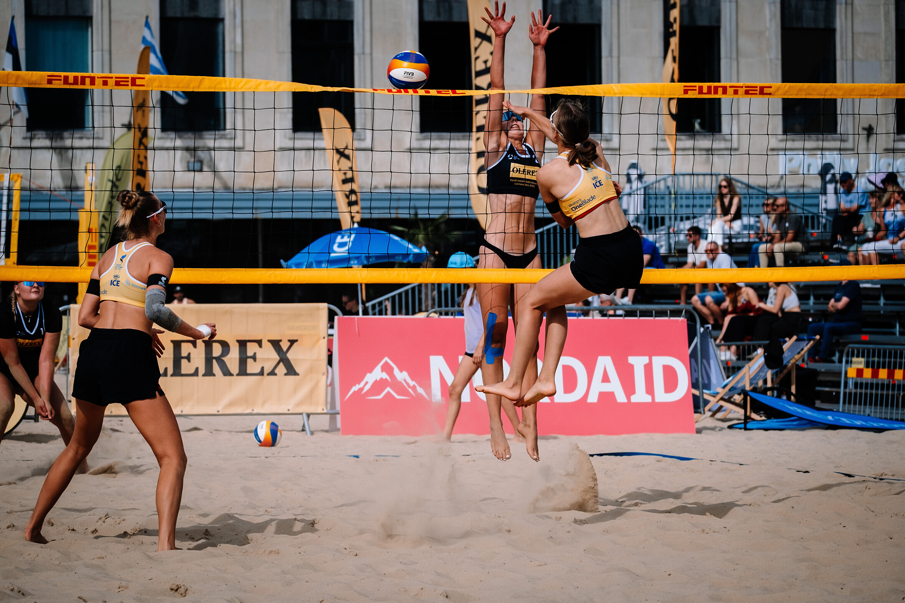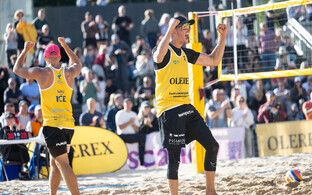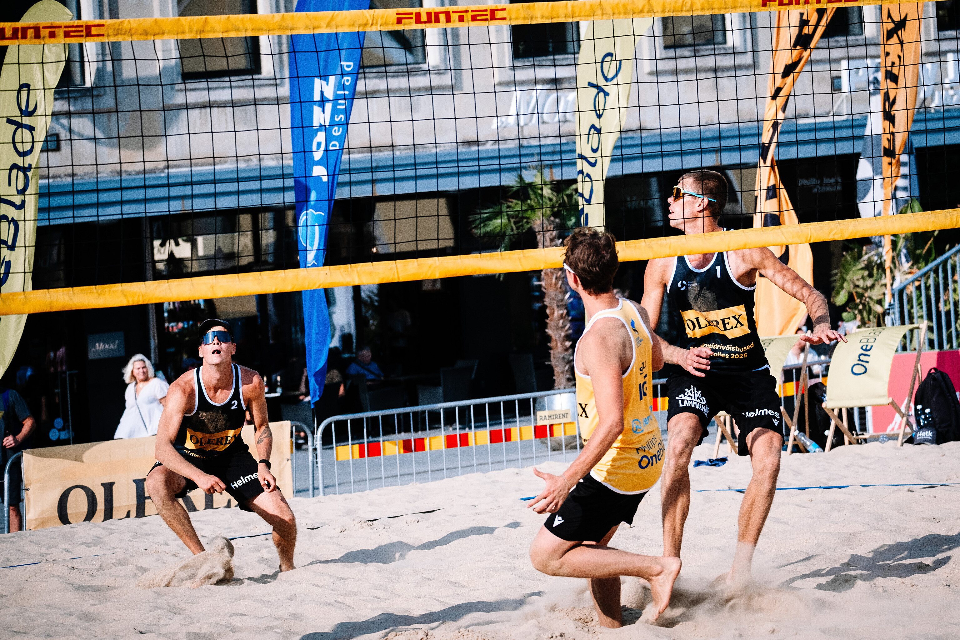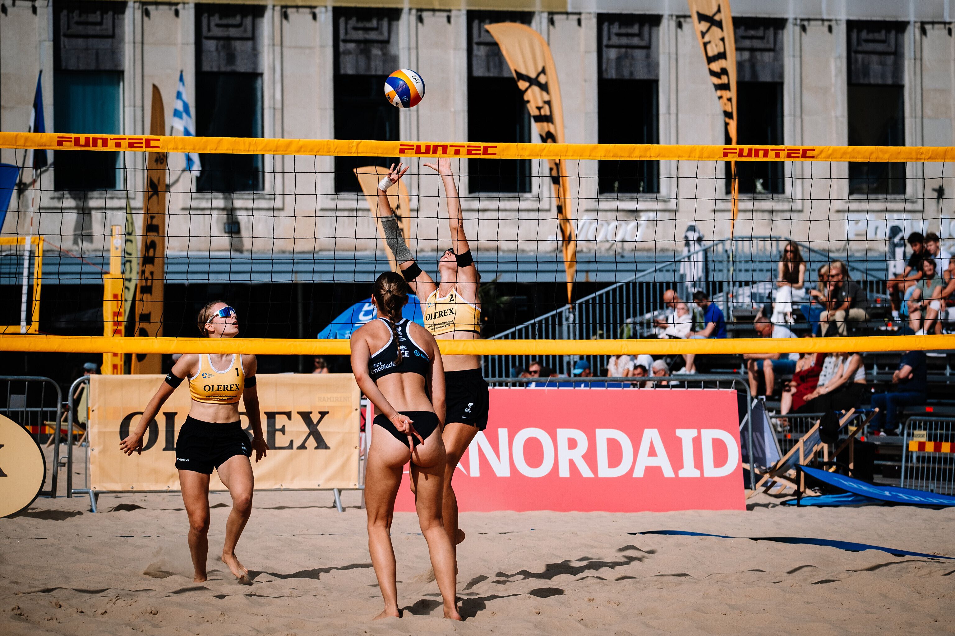 Neljapäevast pühapäevani toimuvad Tallinna südames Vabaduse väljakul Olerex Eesti meistrivõistlused rannavõrkpallis, kus on kahe põhiturniiri päeva järel selgunud veerandfinalistid.
