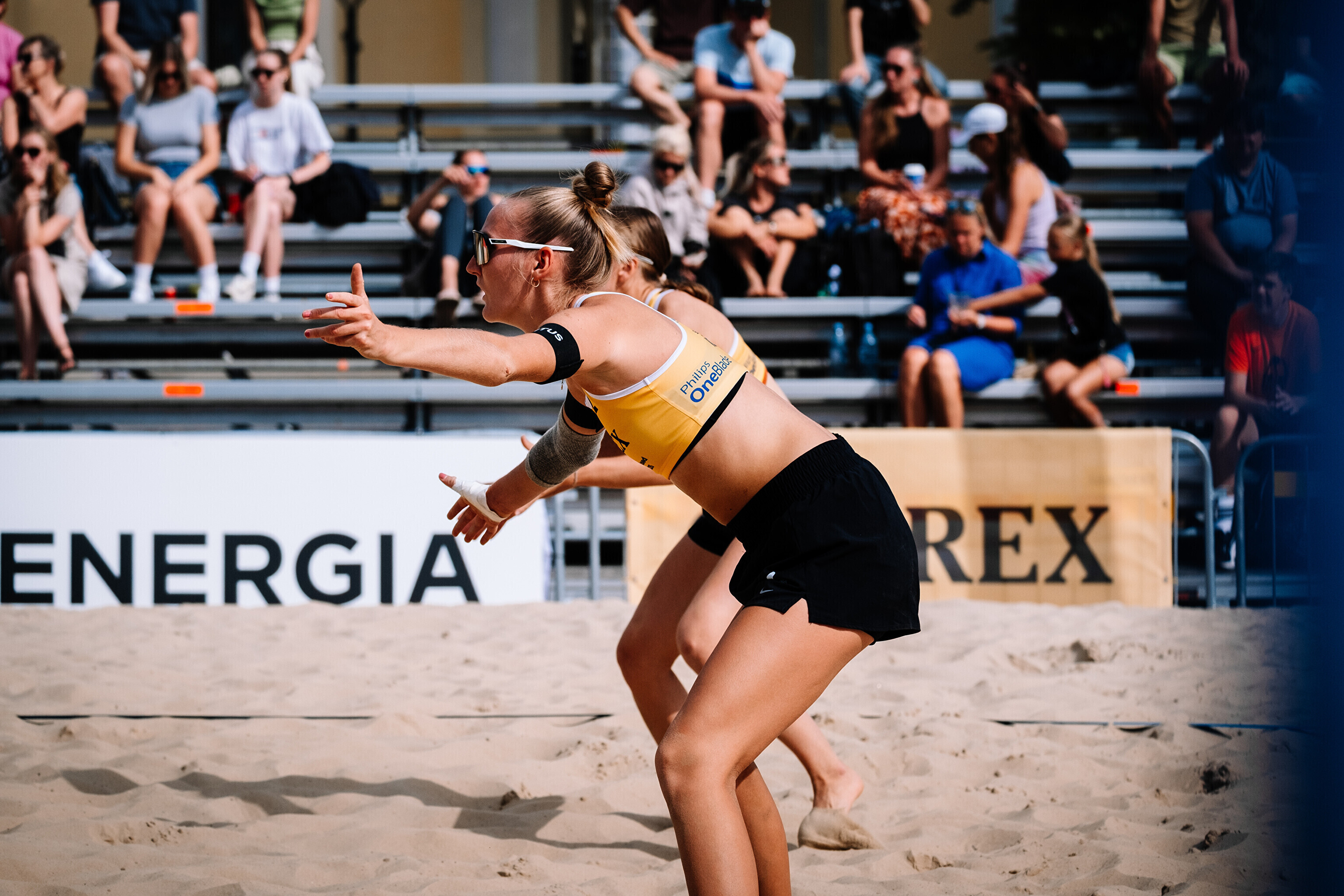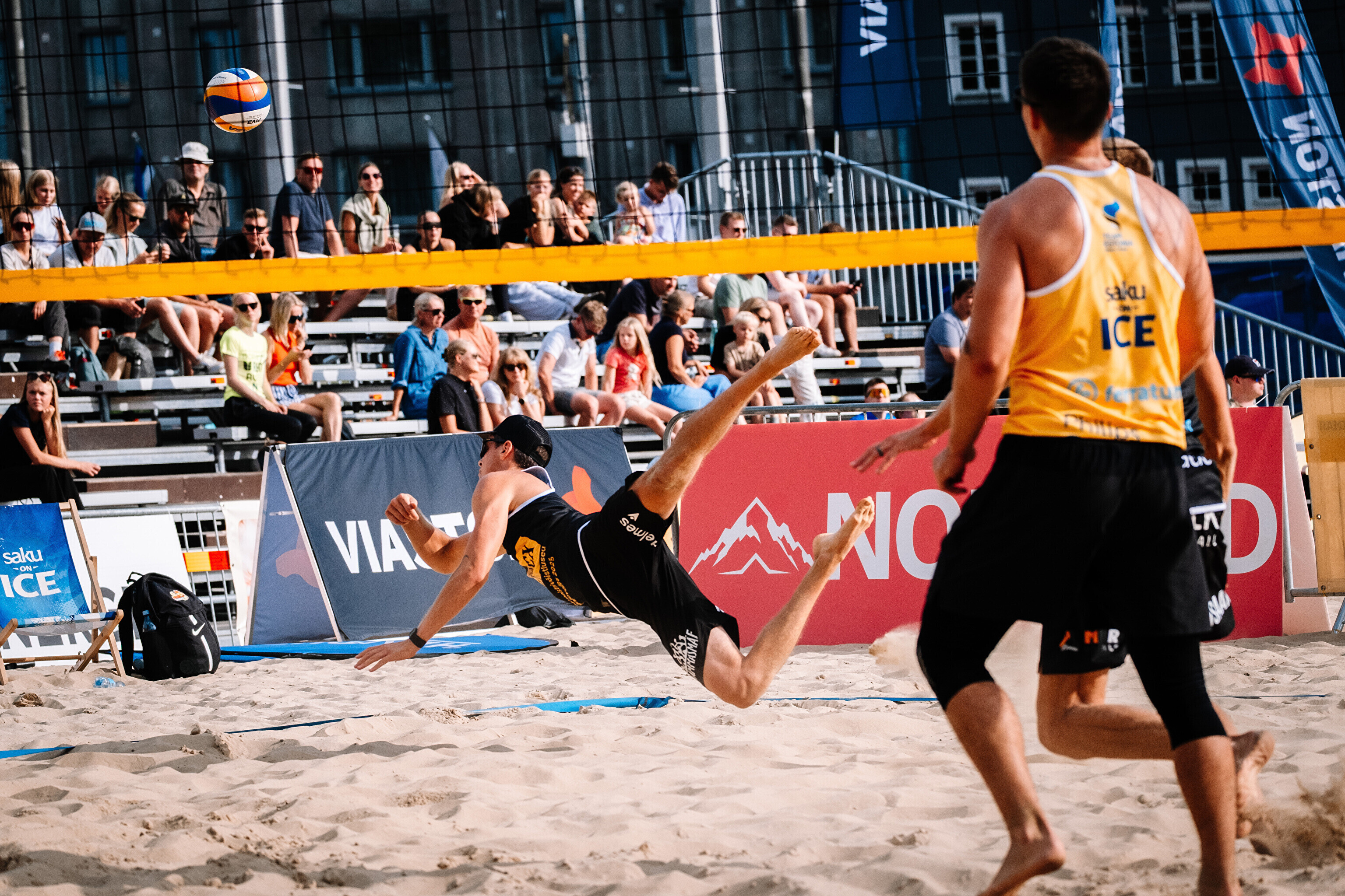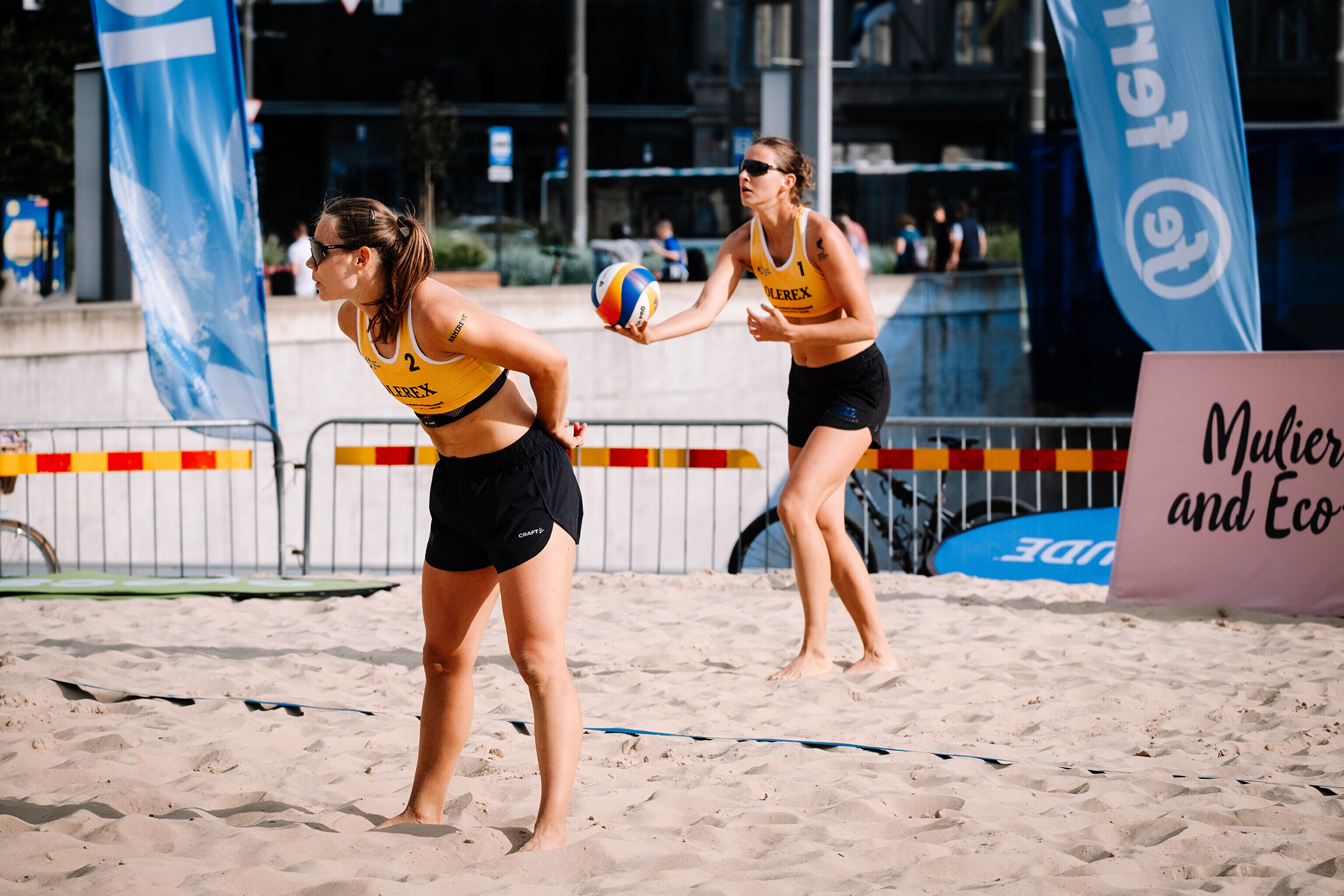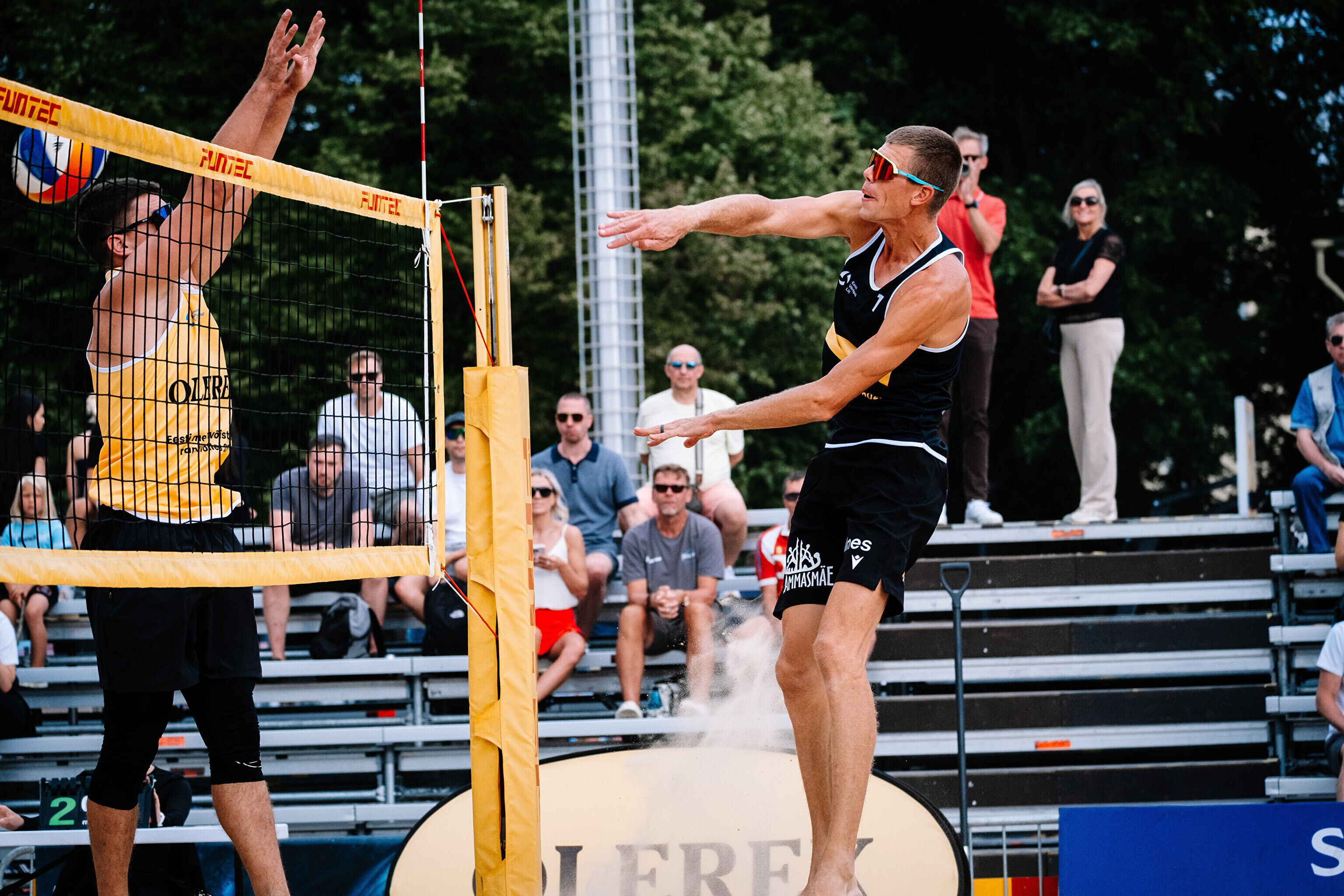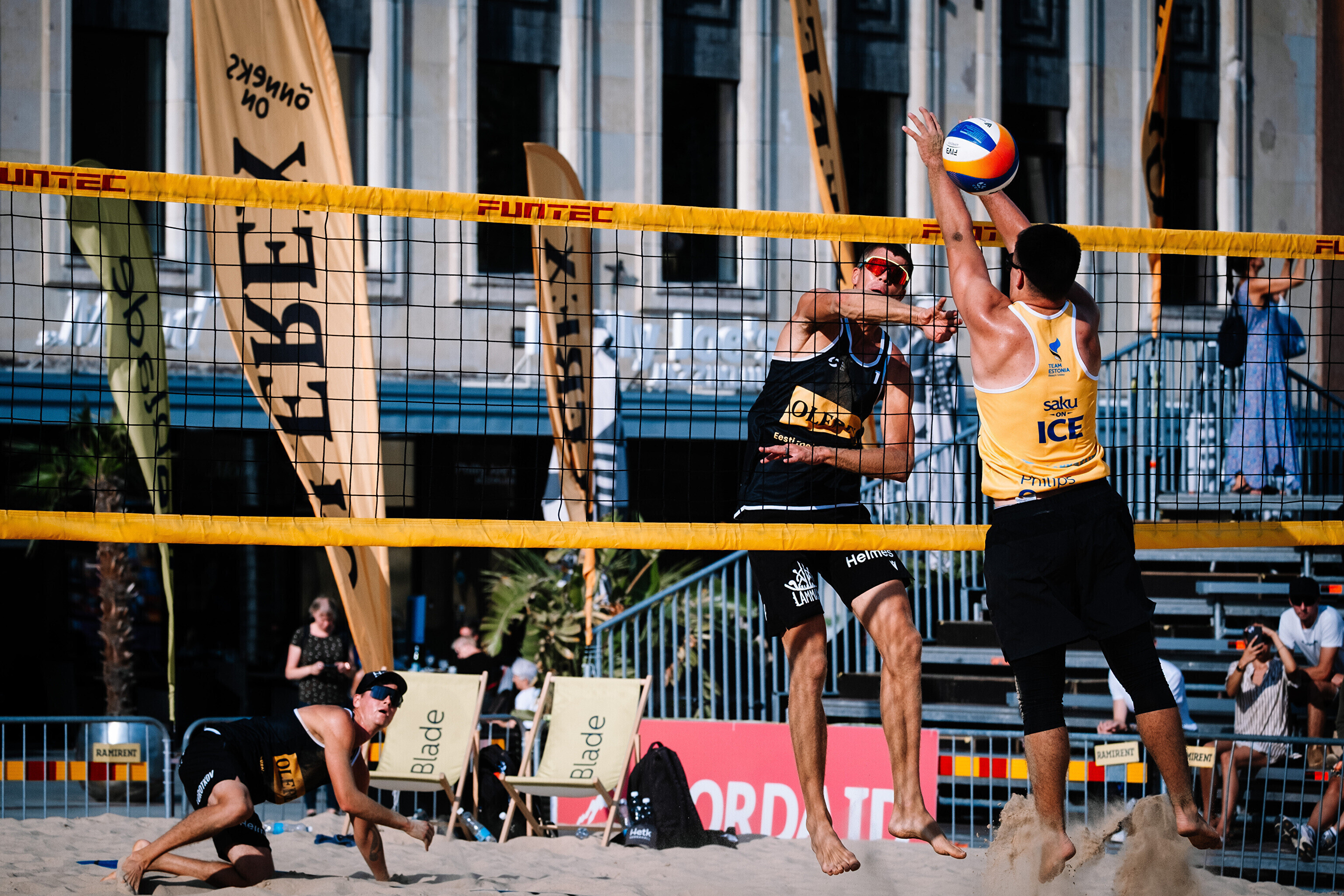 Neljapäevast pühapäevani toimuvad Tallinna südames Vabaduse väljakul Olerex Eesti meistrivõistlused rannavõrkpallis, kus on kahe põhiturniiri päeva järel selgunud veerandfinalistid.