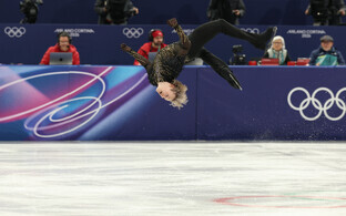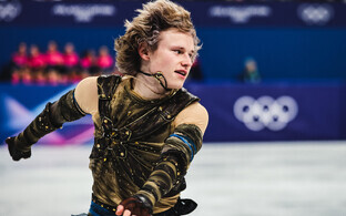 Milano Cortina taliolümpiamängudel Eestit meeste üksiksõidus esindav iluuisutaja Aleksandr Selevko harjutab olümpiajääl ühes grupis koos neljakordsete hüpete supertähe Ilja Malininga.