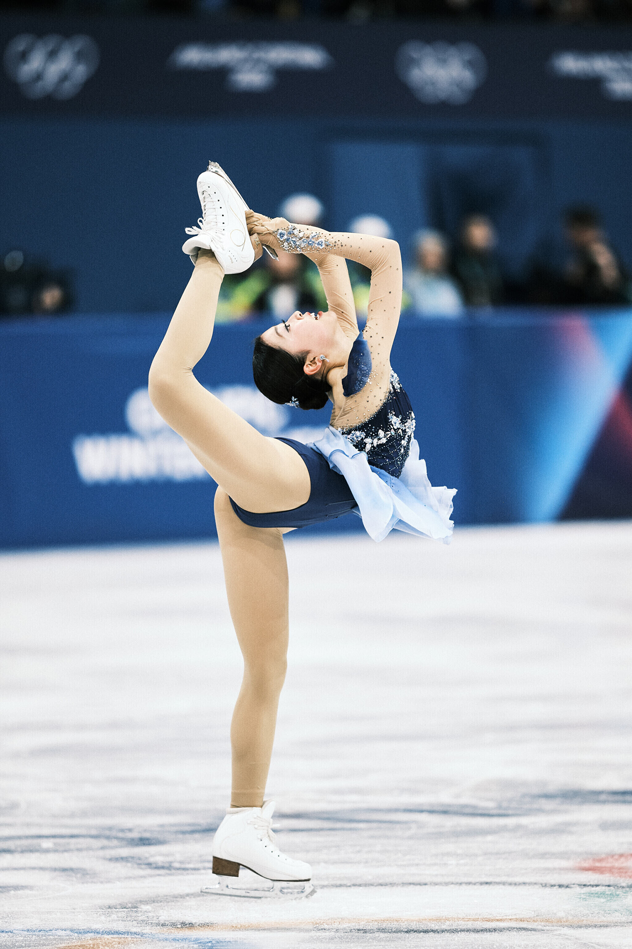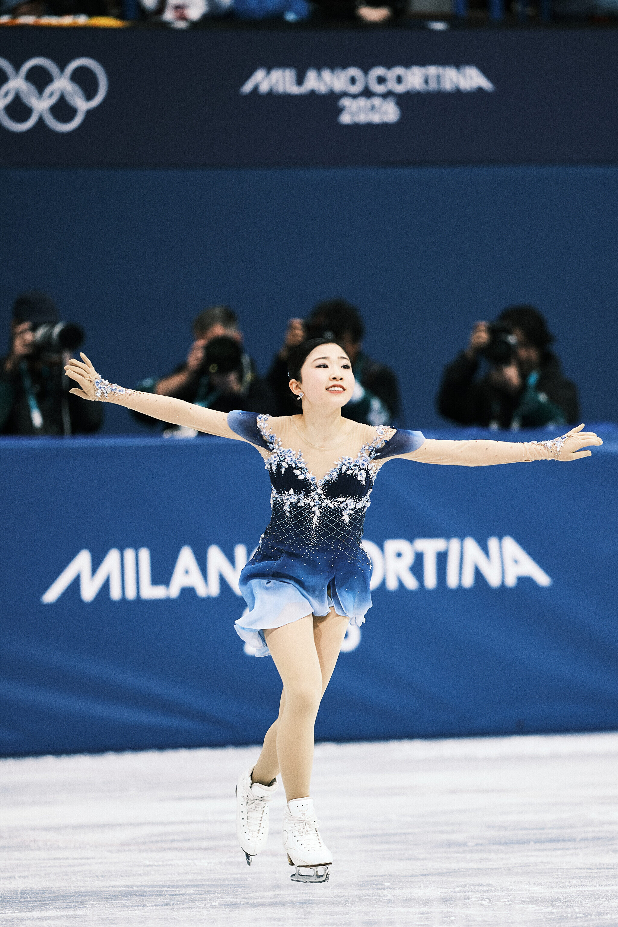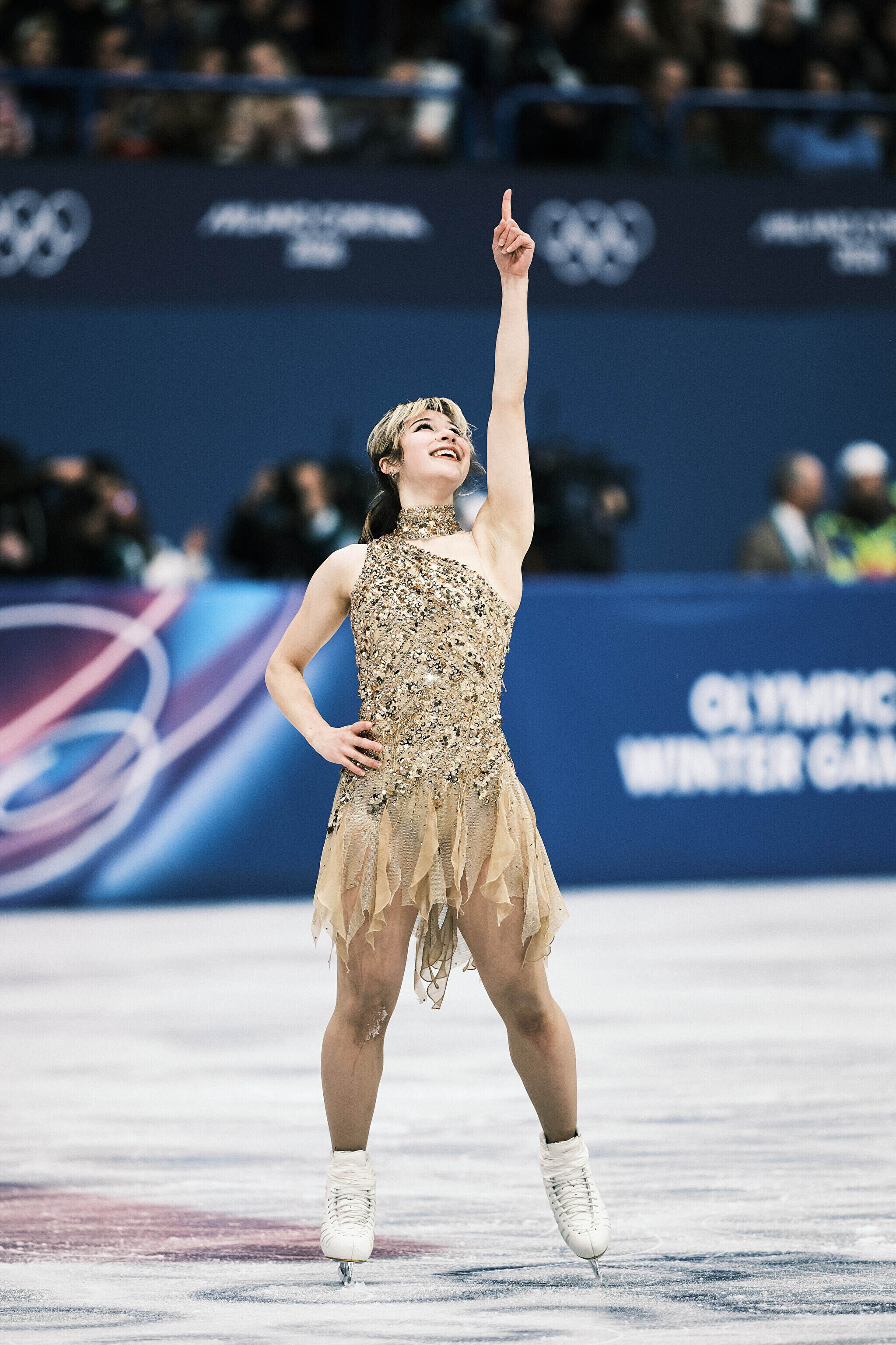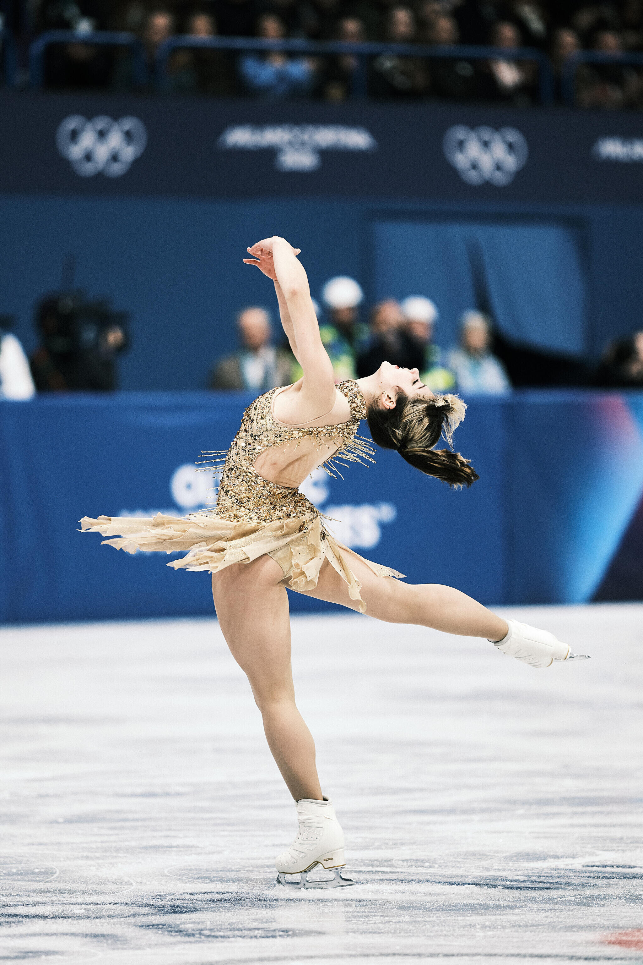 Nende mängude teise kuldmedali võitis valitsev maailmameister, ameeriklanna Alysa Liu, kes sai vabakava eest 150,20 punkti ja viis oma isikliku rekordi 226,79 punktile. Kolmekordne maailmameister, jaapanlanna Kaori Sakamoto pidi leppima hõbedaga (224,90) ning pronksi võitis tema 17-aastane kaasmaalanna Ami Nakai (219,16).