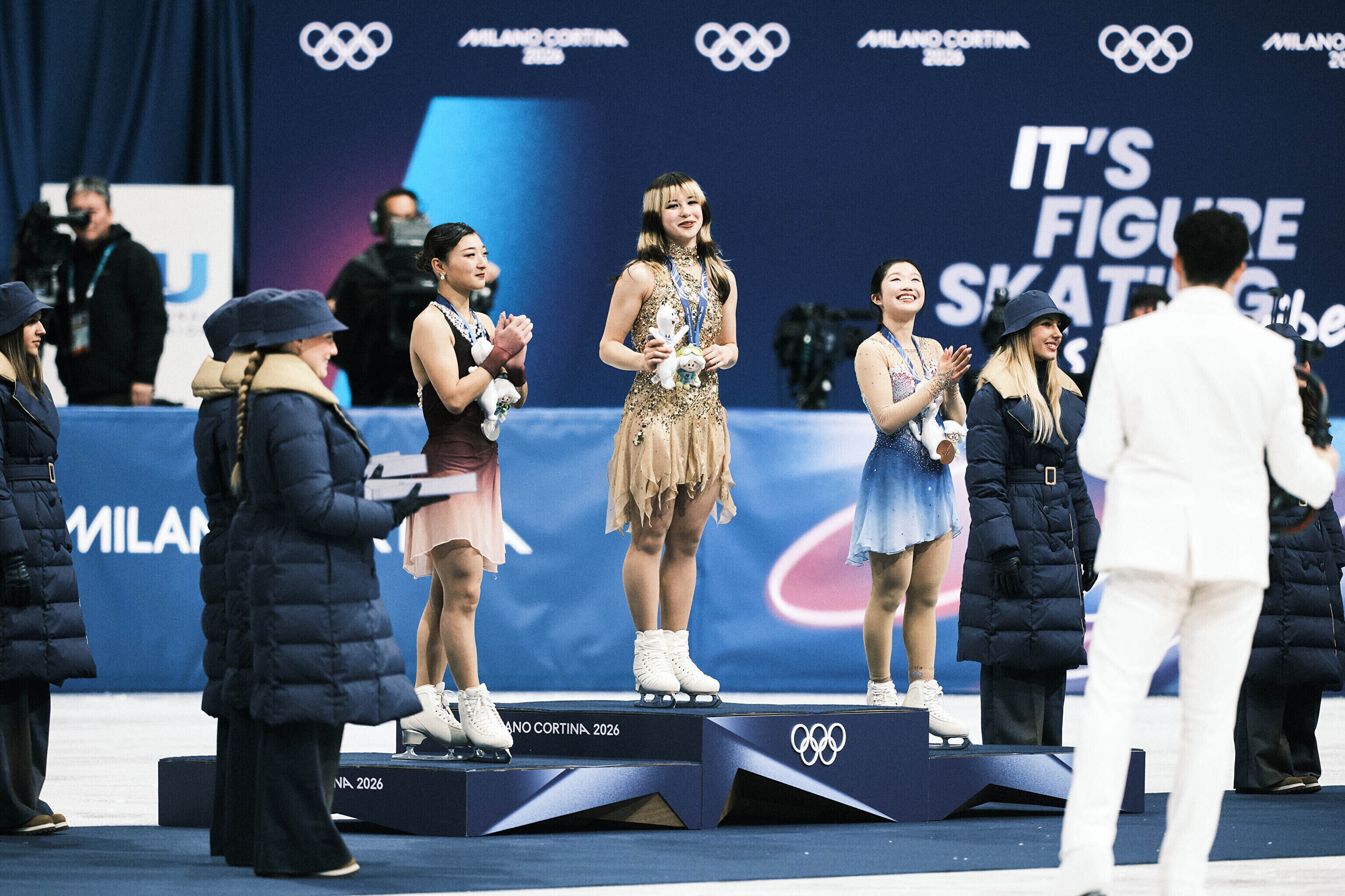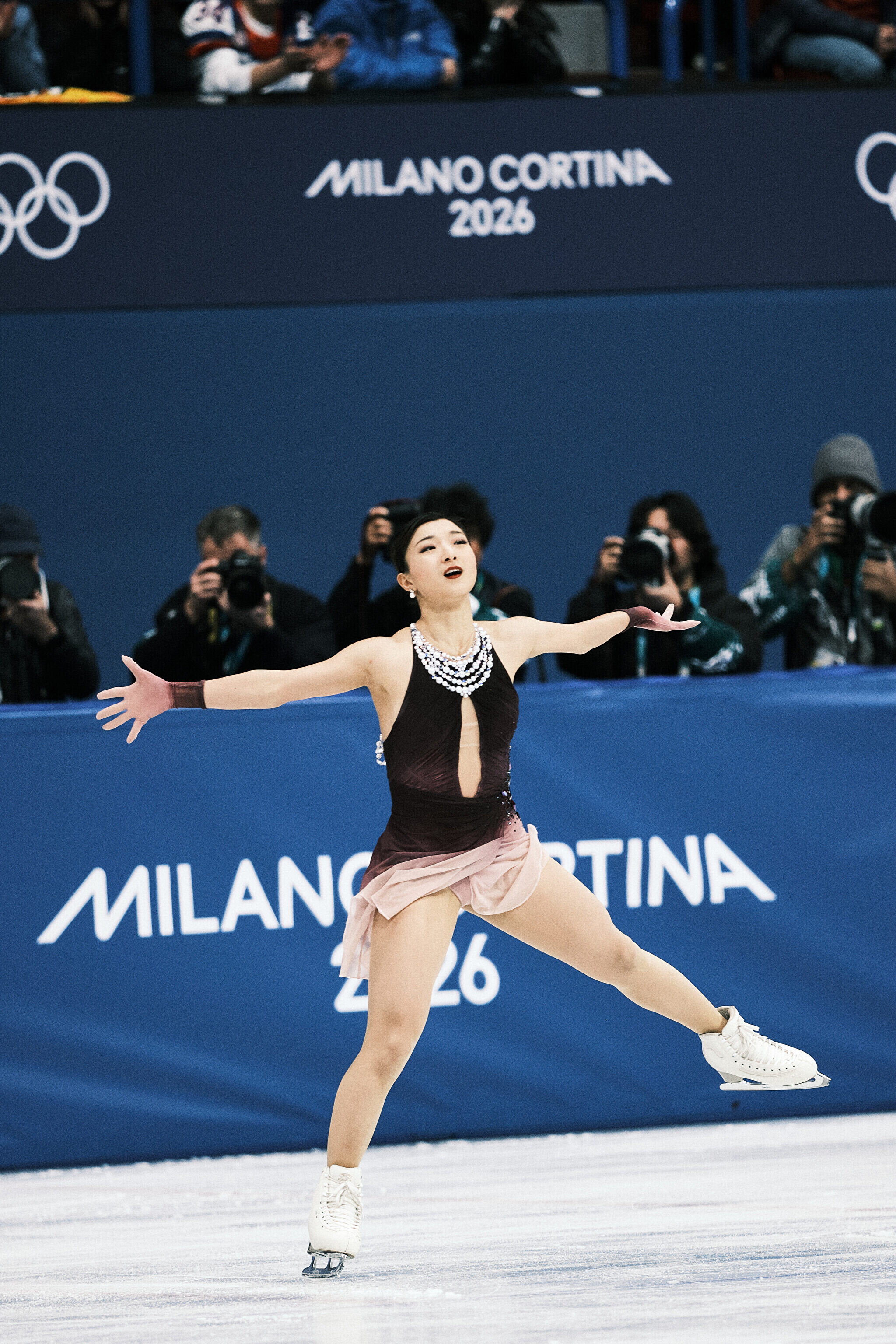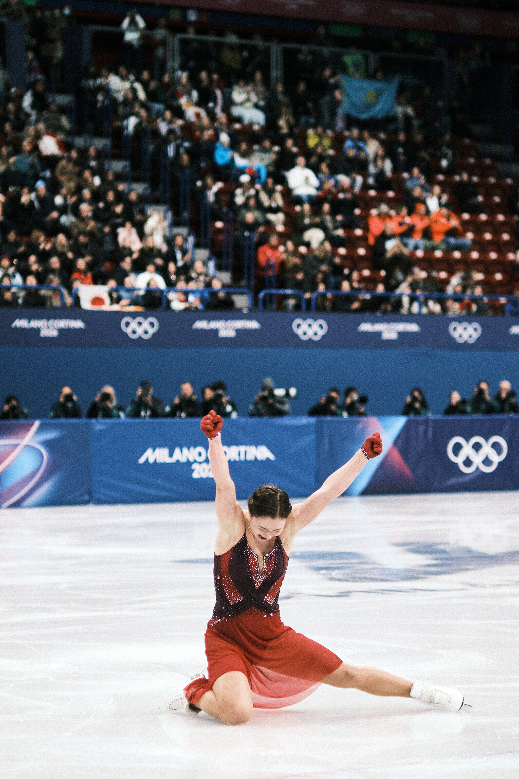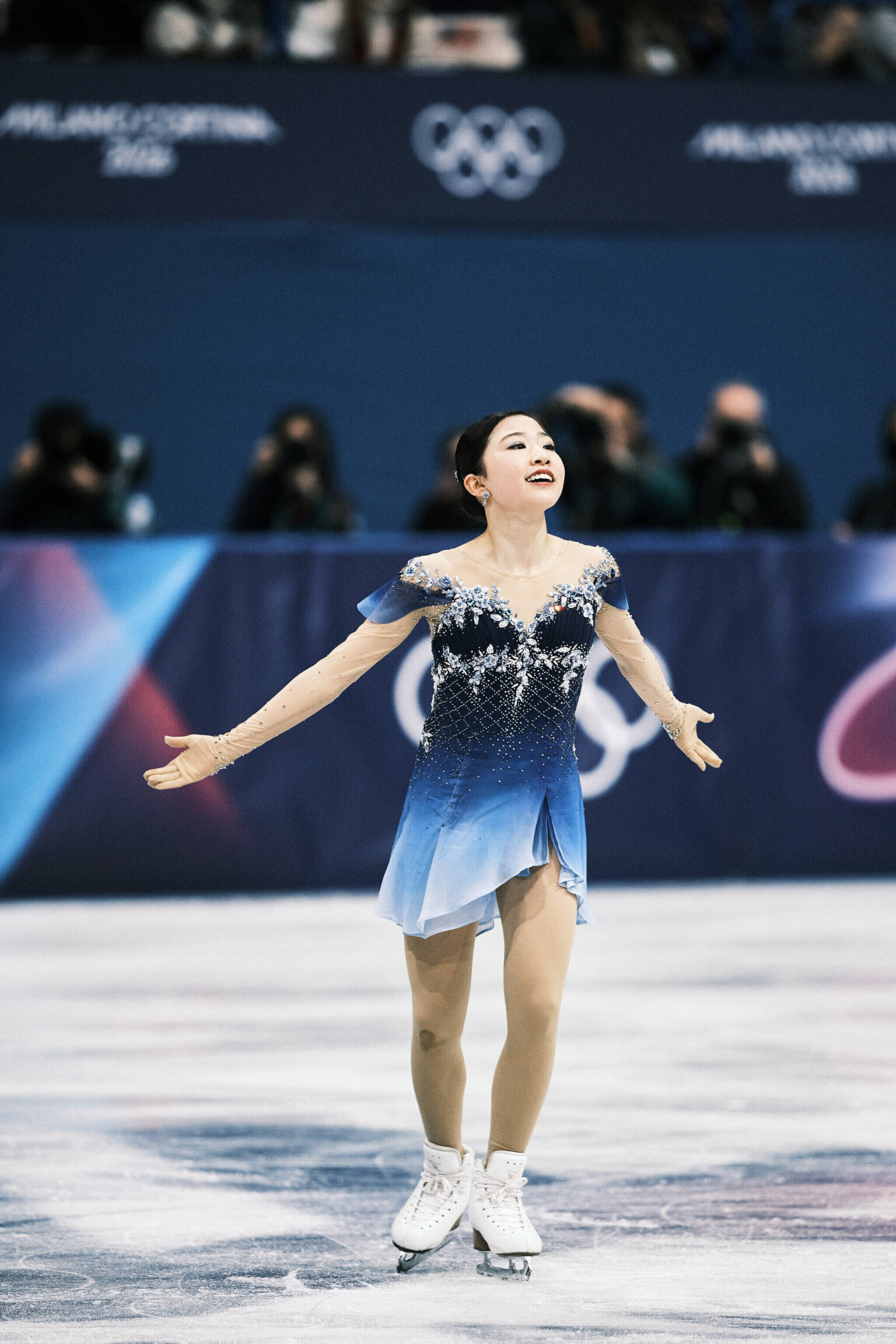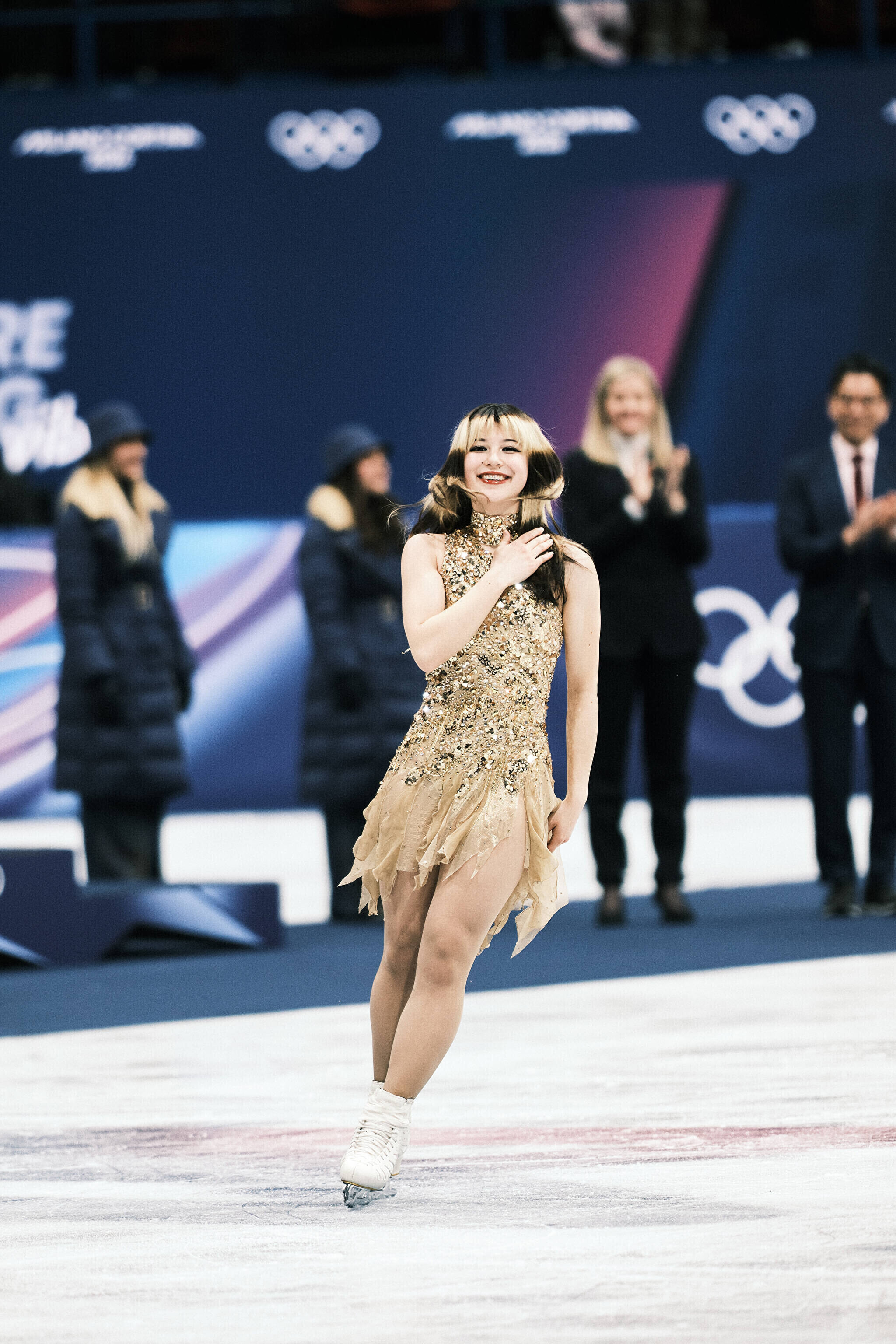 Nende mängude teise kuldmedali võitis valitsev maailmameister, ameeriklanna Alysa Liu, kes sai vabakava eest 150,20 punkti ja viis oma isikliku rekordi 226,79 punktile. Kolmekordne maailmameister, jaapanlanna Kaori Sakamoto pidi leppima hõbedaga (224,90) ning pronksi võitis tema 17-aastane kaasmaalanna Ami Nakai (219,16).