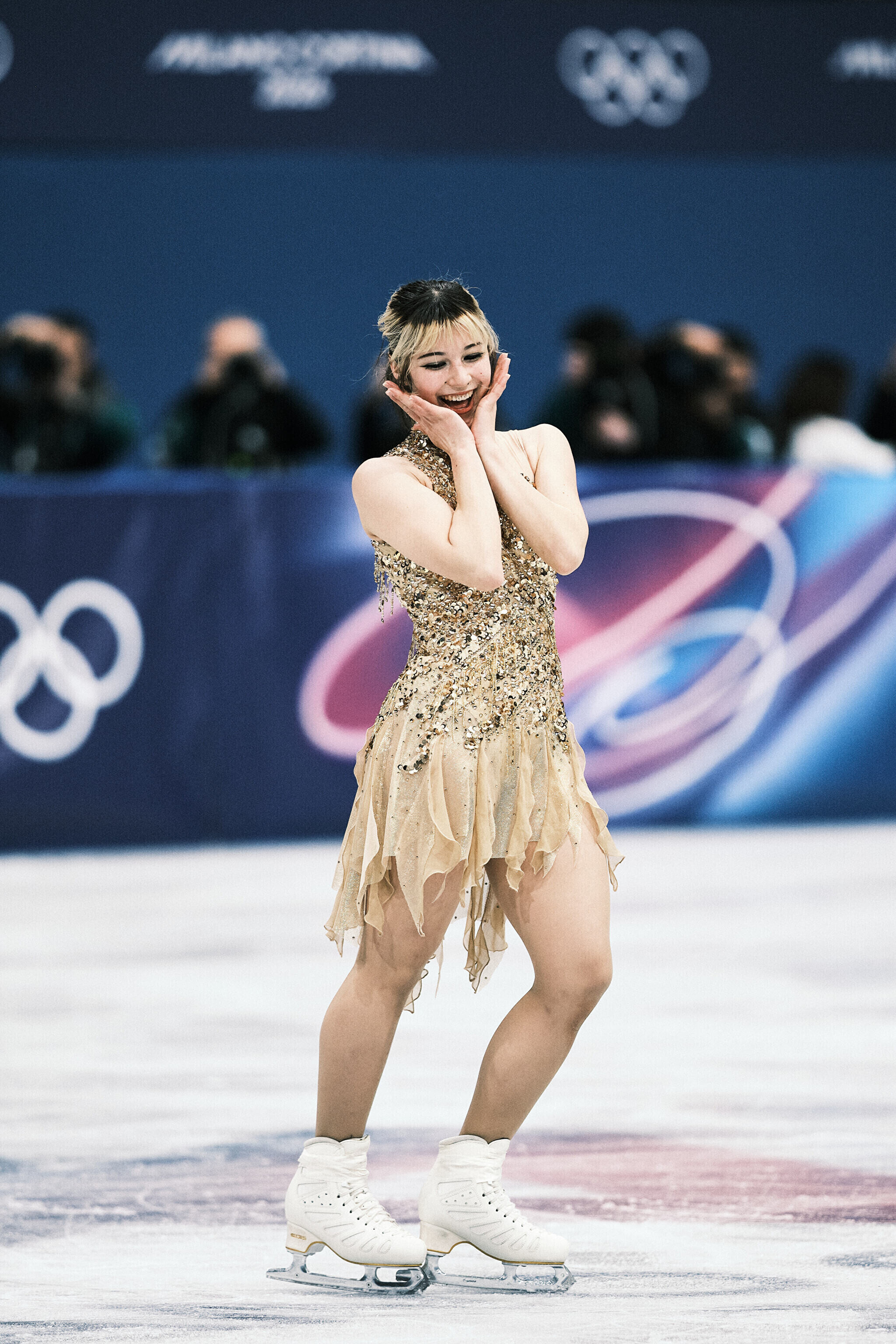 Kõrgetasemelises lühikavas kogus üle 70 punkti koguni üheksa naist. Esikohal on 78,71 punktiga jaapanlanna Ami Nakai, kellele järgneb oma viimasel võistlusel esimest olümpiakulda jahtiv Kaori Sakamoto 77,23 punktiga. Mullune maailmameister, ameeriklanna Alysa Liu on 76,59 punktiga kolmas.
