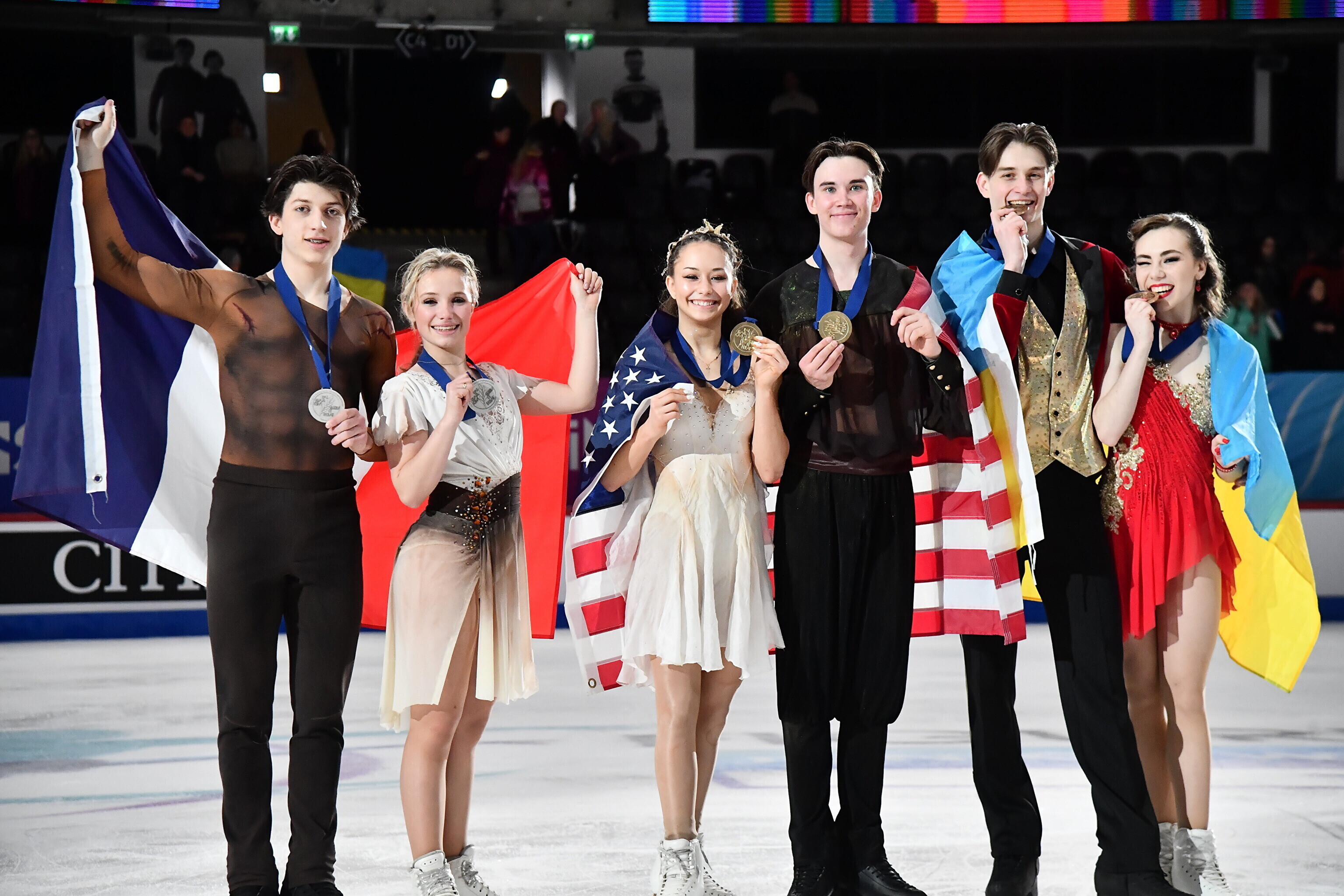 Rütmitantsu järel liidriks asunud paar osutus napilt parimaks ka vabatantsus. Neile järgnesid Prantsusmaa paar Ambre Perrier Gianesini - Samuel Blanc Klaperman (164,88) ja Ukraina paar Irõna Pidgaina - Artjom Koval (164,32).