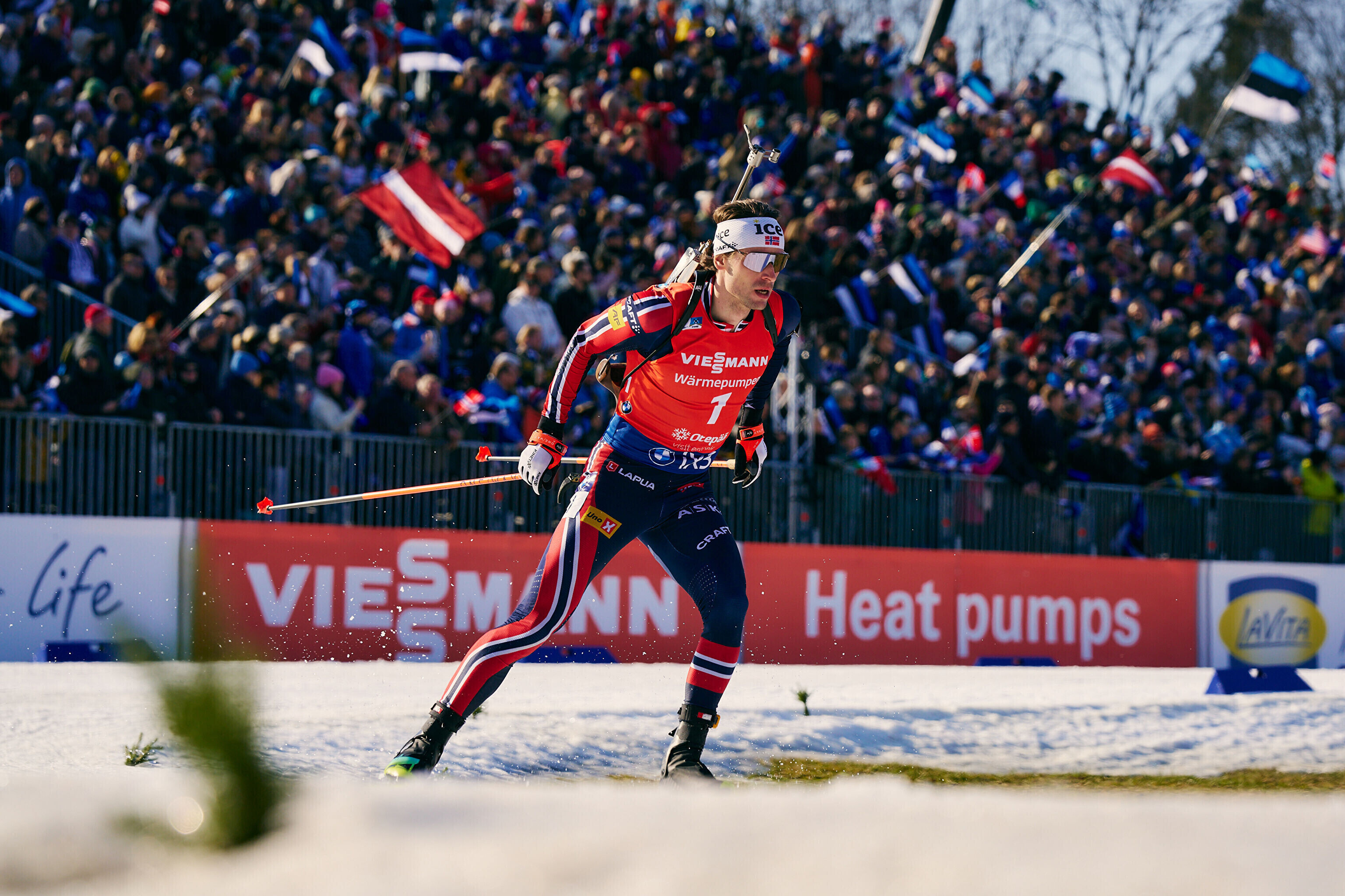 Keerulistes oludes peetud võistlusel eksis esimesena alustanud Lägreid vaid korra ja edestas finišis teiseks tulnud Emilien Jacquelini (5) enam kui kahe ja poole minutiga. Kolmanda koha teenis samuti viis möödalasku teinud Martin Uldal (+2.46,7).