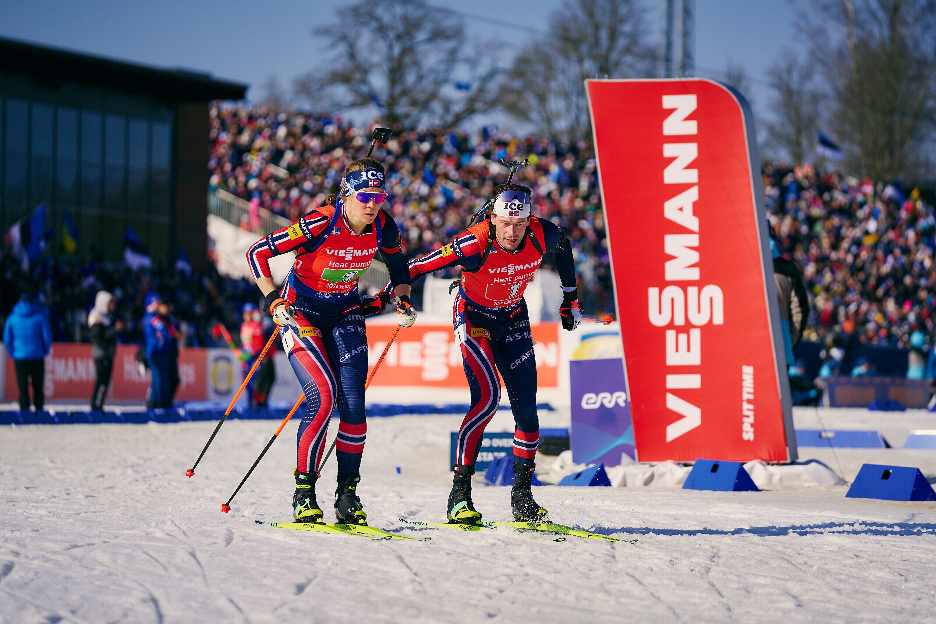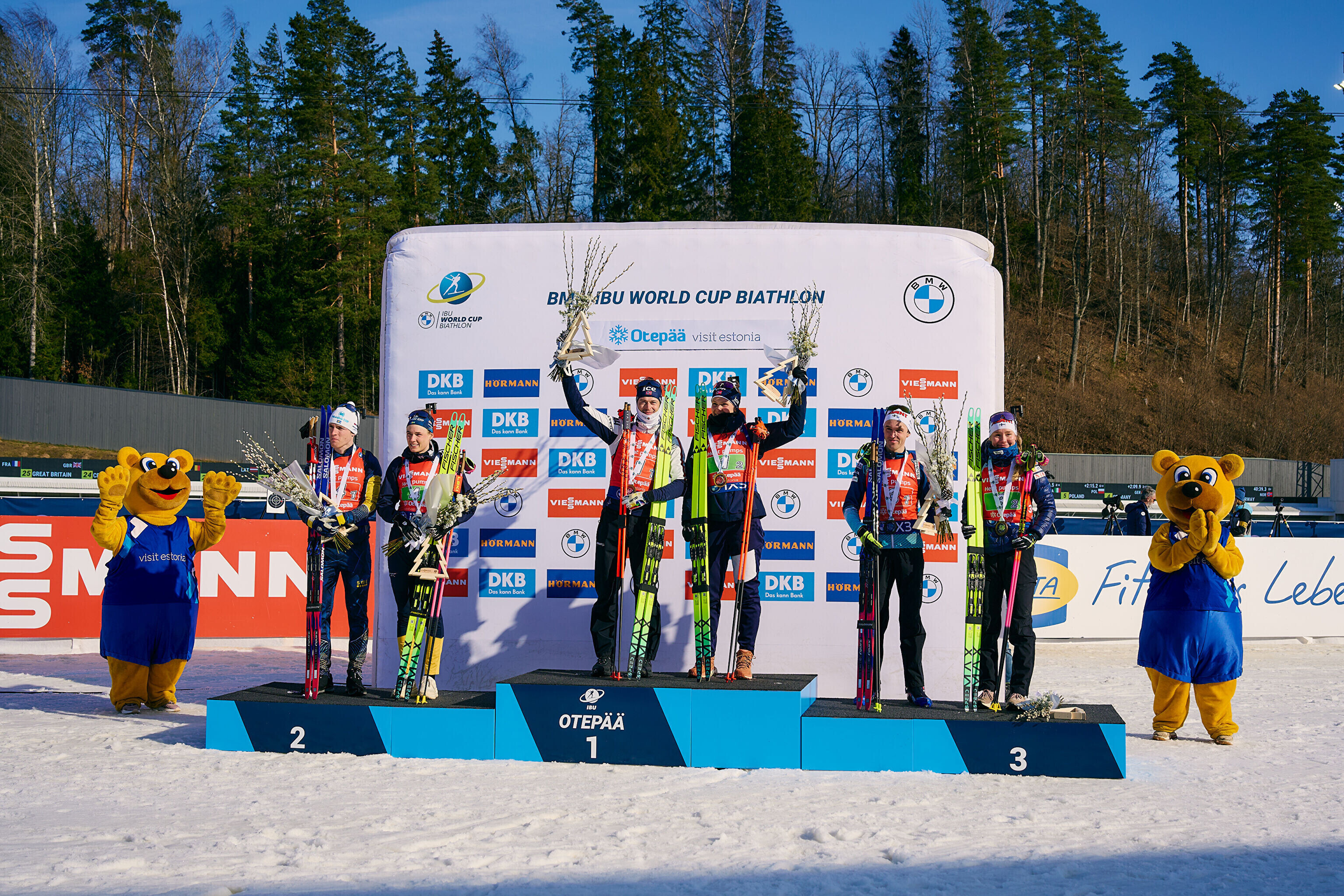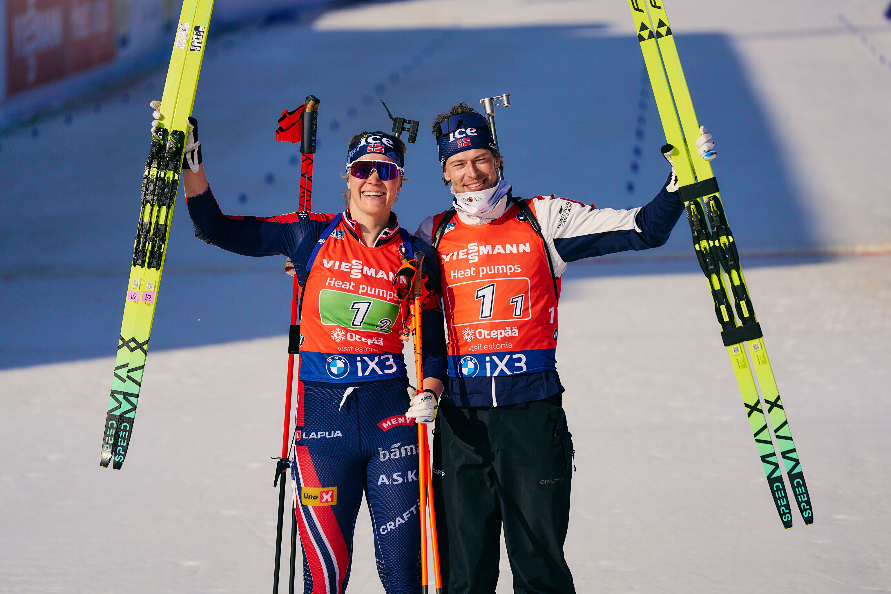 Otepääl tegi suurepärase võistluse Norra paar Sturla Holm Lägreid - Karoline Offigstad Knotten (0+8; 40.39,3). Liidriks kerkiti teise vahetuse järel, kolmandas sõitis Lägreid korraliku vahe sisse ja neljandas andis Knotten veel hagu juurde.
