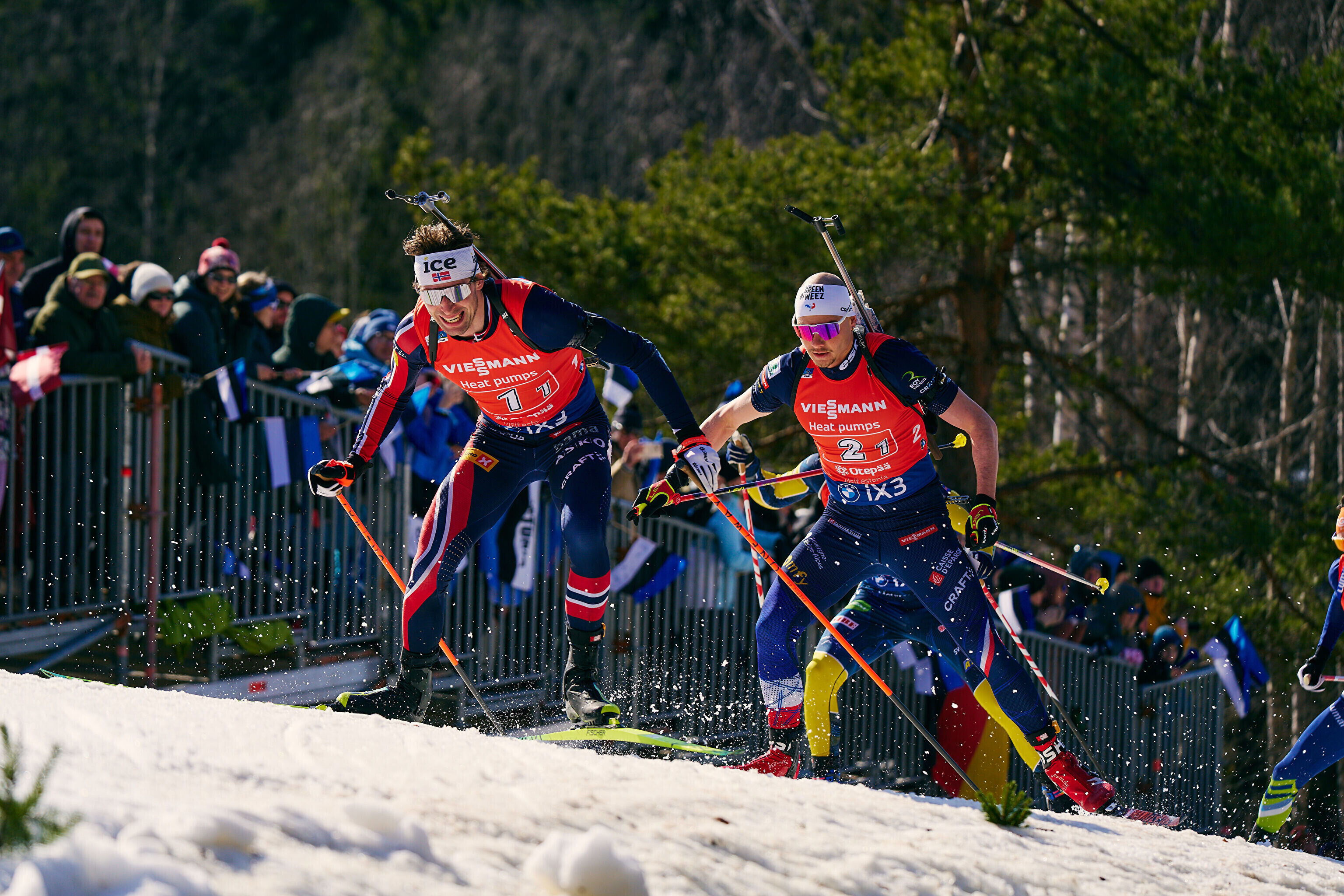 Koha eest pjedestaalil võistles ka Prantsusmaa (Camille Bened - Emilien Jacquelin), aga Jacquelin võttis ühes tiirus eksikombel kasutusele koguni neljanda varupadruni ja see tähendas diskvalifitseerimist.