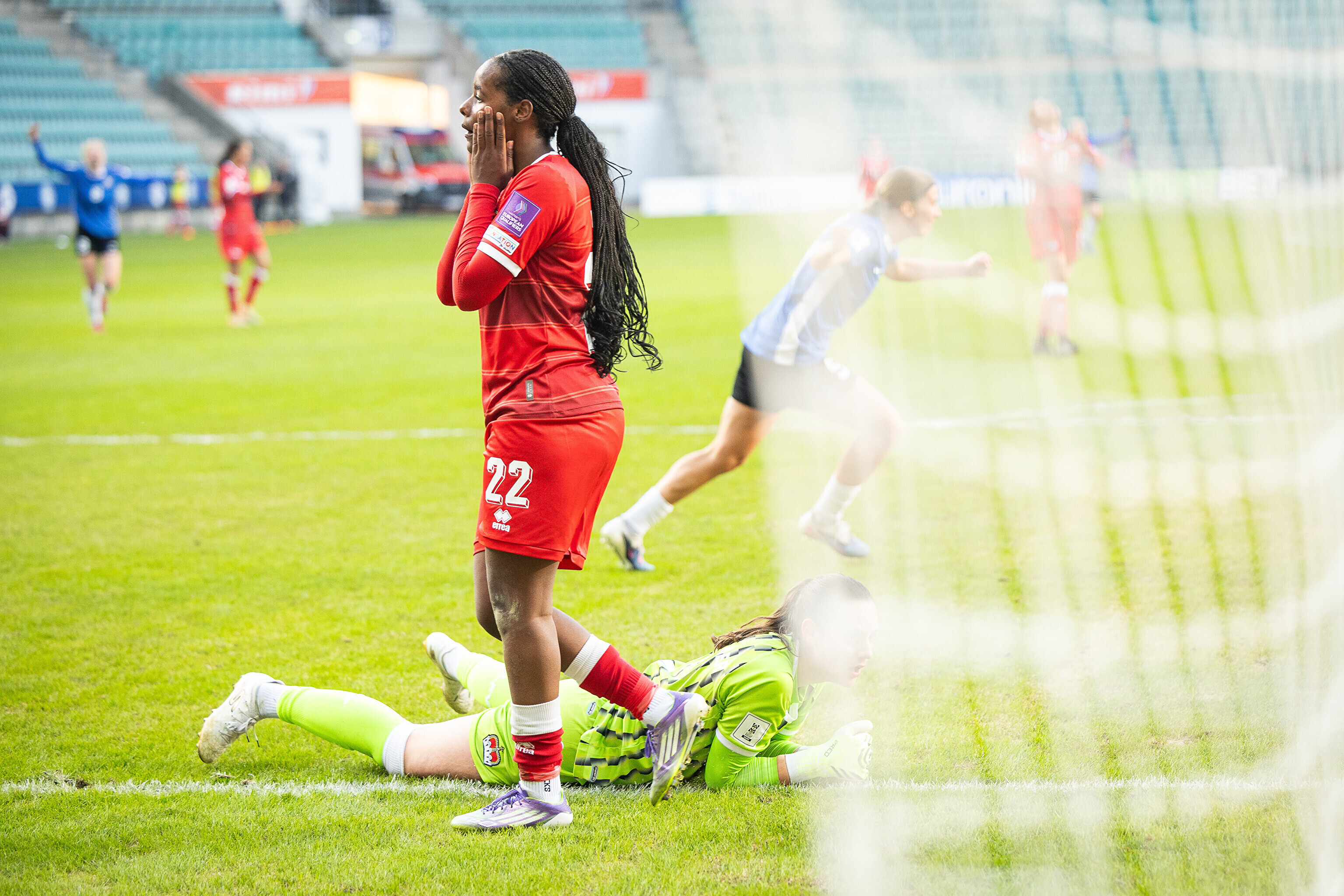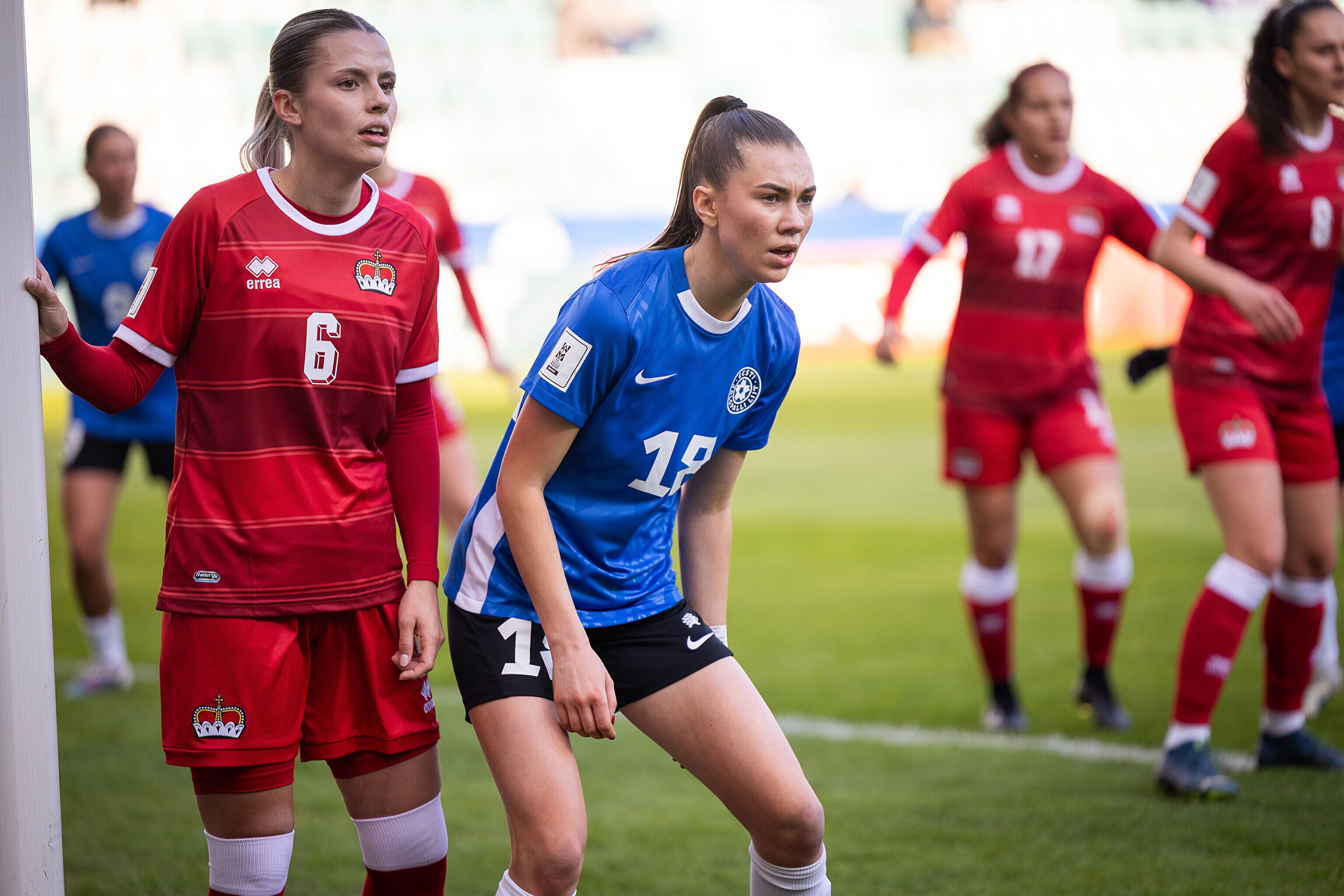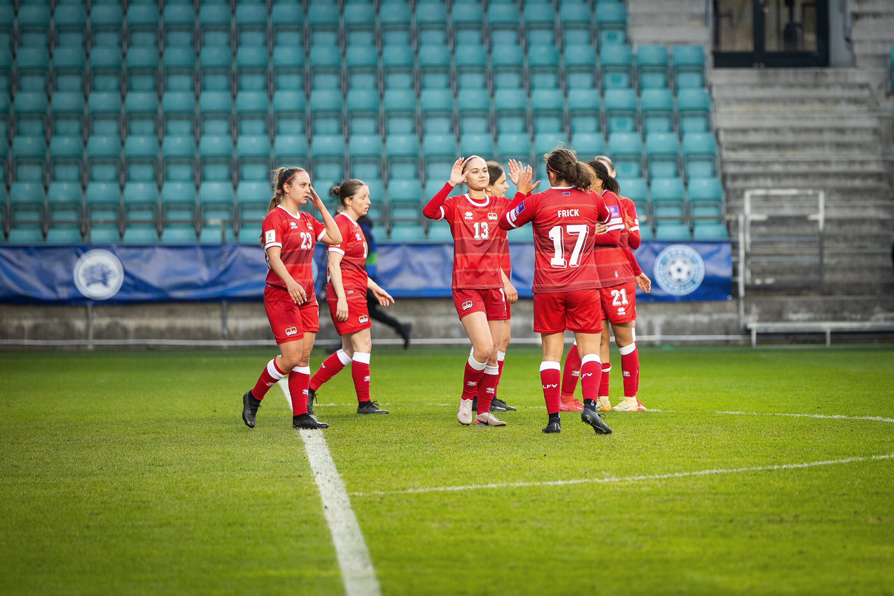 Liechtenstein tuli aga riietusruumist välja hea hooga ning Šveitsi kõrgliigas mängiv Joy Nzengula Steck tõi 49. minutil ilusa kauglöögiga tabloole viigi. Eestlannade olukord läks seejärel keeruliseks, kui Annagret Kala 61. minutil vastaste vasturünnaku veaga maha võttis ning sellega punase kaardi teenis. Järgnenud olukorrast väravat ei sündinud, kuid Eesti pidi viimased pool tundi mängima arvulises vähemuses.