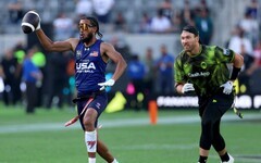 22.03.26 AMEERIKA JALGPALL ... Los Angeleses toimus öösel vastu pühapäeva lipujalgpalli (flag football) näidisturniir, milles 2028. aasta olümpiale suurfavoriidina minev USA koondis alistas kaks NFL-i mängijatest kokku pandud meeskonda.